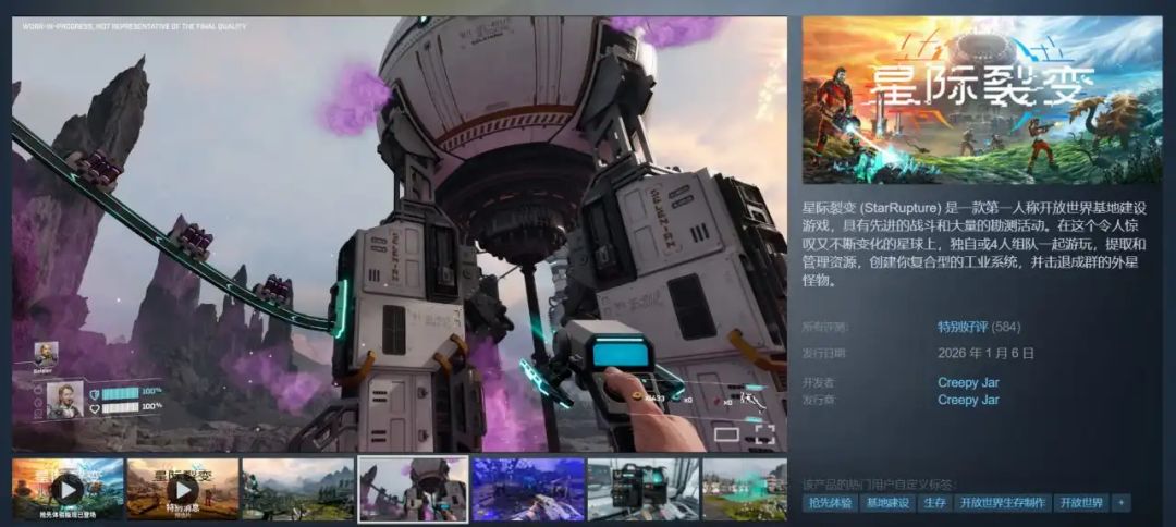 《绿色地狱》厂商(Creepy Jar)新作《星际裂变》现已发售,目前玩家评价为“特别好评”,因为前作《绿色地狱》的表现还不错,新作又是以外星球探索、基建+战斗为题材,目前已获得全球热销榜第三名的成绩~