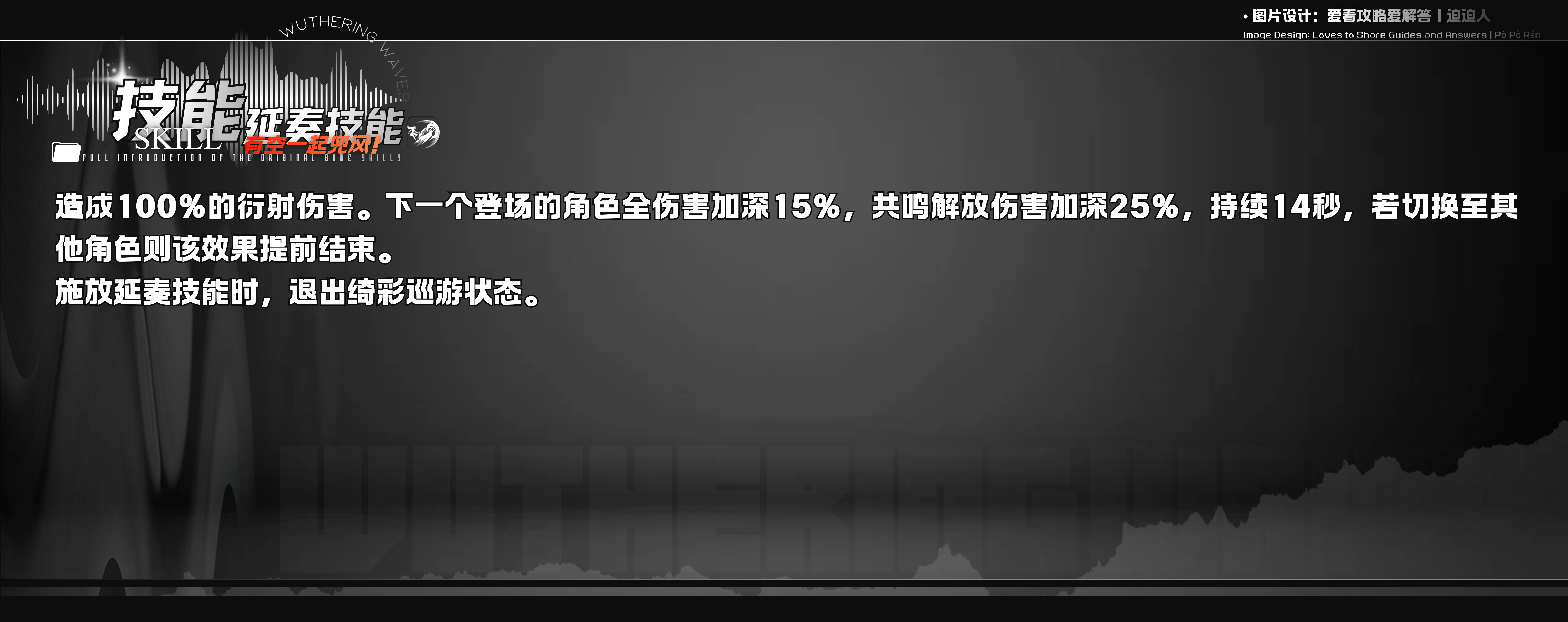 ■琳奈的共鸣解放:释放后全队伤害提升24%,可持续30秒,可在绮彩巡游状态下触发额外普攻,主要在于增伤能覆盖到全队。