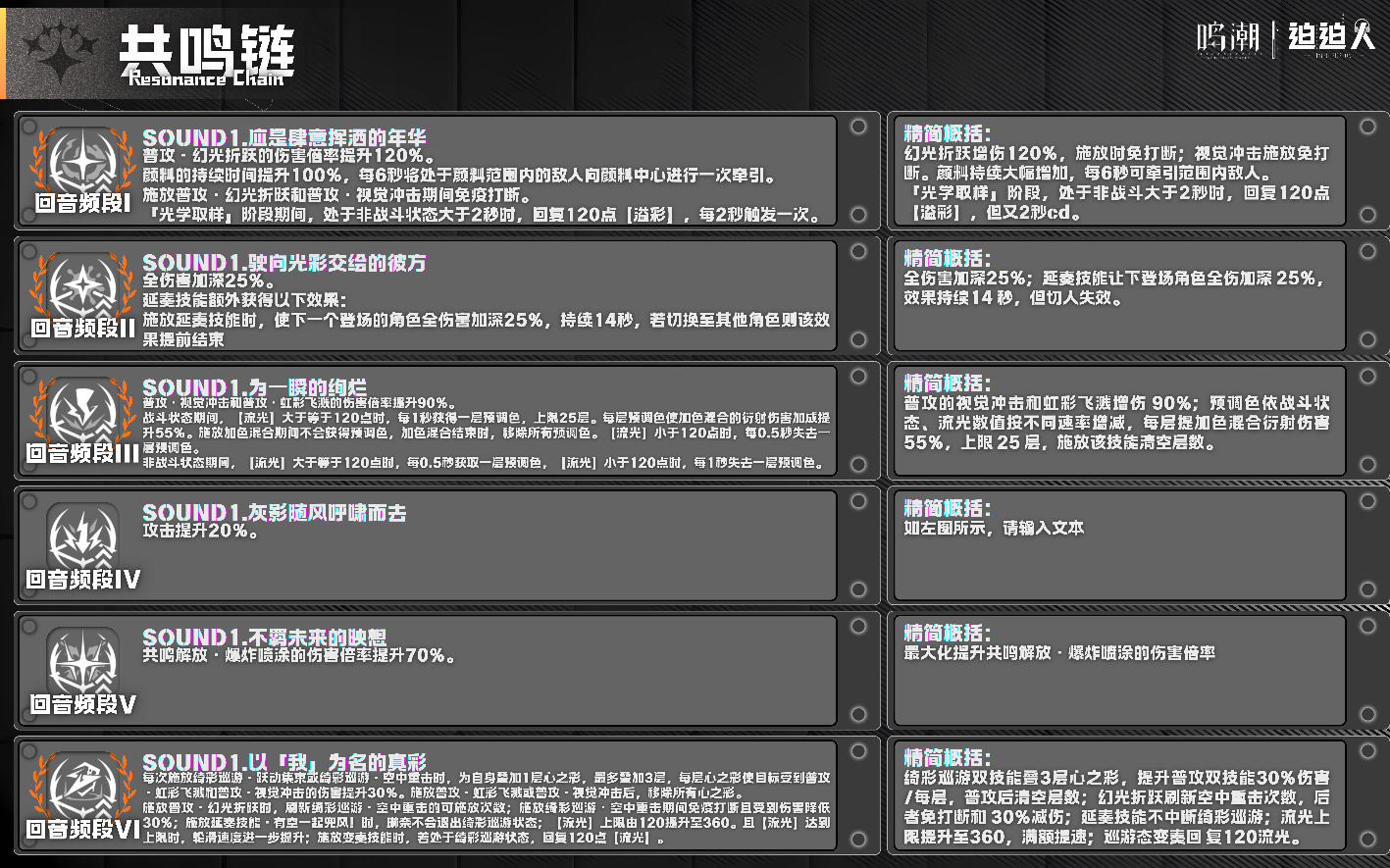 最后进行一波汇编总结:❶值得抽,基本很多C队都适合进❷副C带逆光,主C带流金,词条优先暴击,衍射,攻击力。❸预算足够可抽专武,共鸣链补二链即可