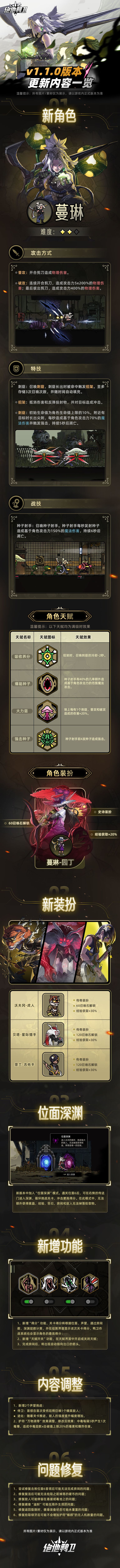 ,本次新版本带来全新角色园艺师-蔓琳、多款新装扮,新增“位面深渊”模式、“天赋开关”功能,更多更新内容可见下方长图。