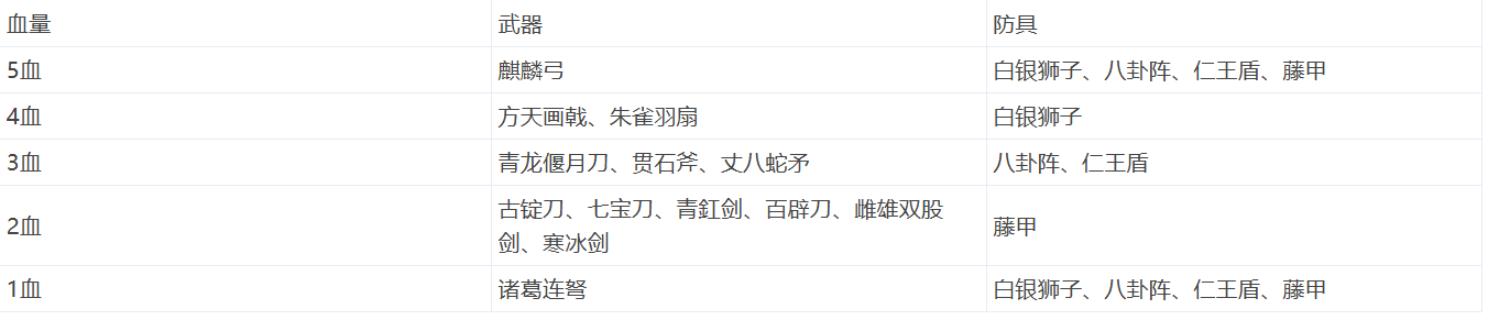 覆载:1、“覆载”的武器的攻击范围、防具的牌名字数等于你当前体力值,若无满足条件的装备则随机。根据此,我们可以列一个简单的武器和防具表:
