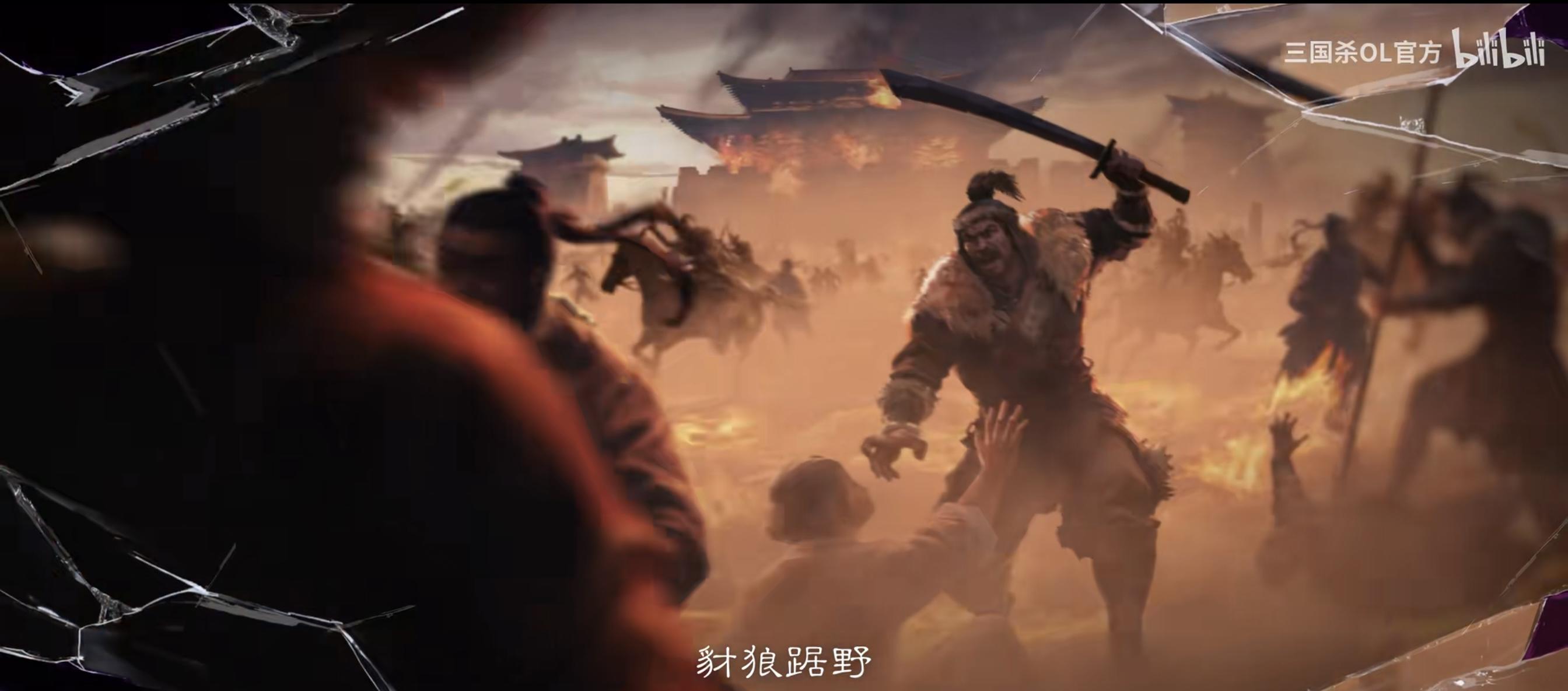 伴随着曹操的语音【三分天下数十载,无人执槊破昏冥】。这里表明的是,曹操对天下三分没能归于一统的惋惜。而再往后,就是让曹操无法坐视的一幕幕了。伴随着曹操的语音【豺狼踞野,万民血泪,江山疮痍,皆因尔等昏聩,钝劣无能!】