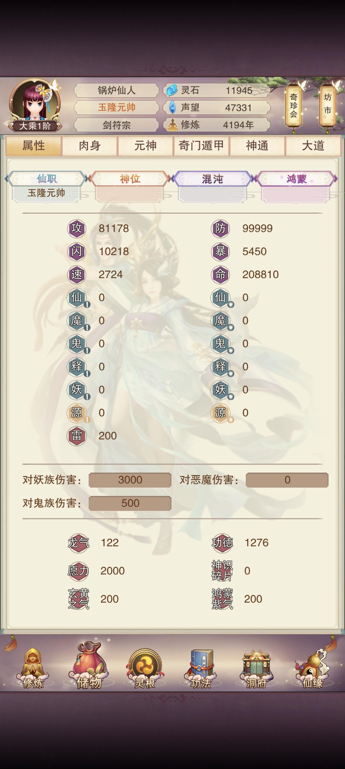 历四千一百九十载,入大乘之境。今适值吾生辰,然此境实为过渡之阶,资质平乎众修,未敢称颖异。唯祈天时相济,玄机早启,庶几丹道精进,得窥玄奥之方。