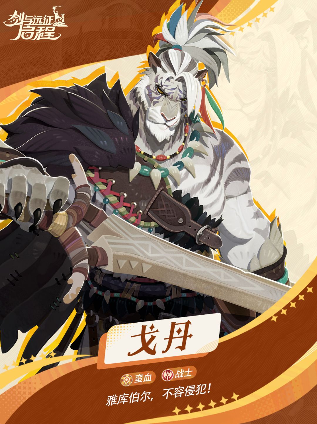 大魔法师好,骁勇善战的蛮血英雄「戈丹」,将用他的巨剑击败所有侵犯雅库伯尔的敌人。现为你带来最新角色情报,一起来看看吧~
