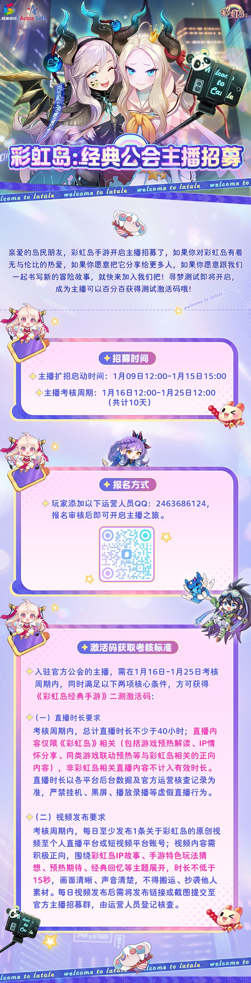 亲爱的岛民朋友,彩虹岛手游开启主播招募了