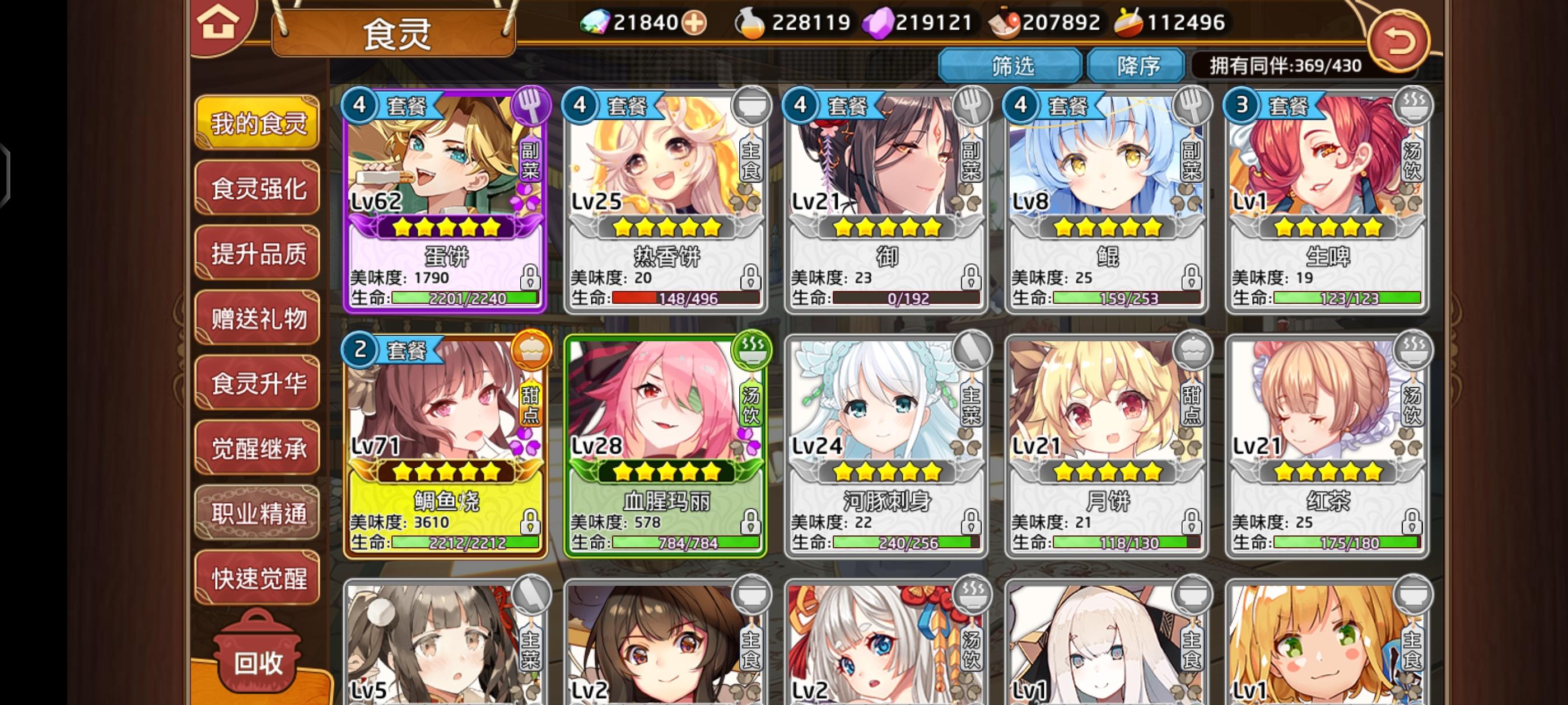 虽然说很多食灵都可以煮出来,但很多别人的配方做出来的都不是需要的食灵,而且我记得我之前开过号的,不知道为什么被删了,懒得找回来,这是我直接开的新号