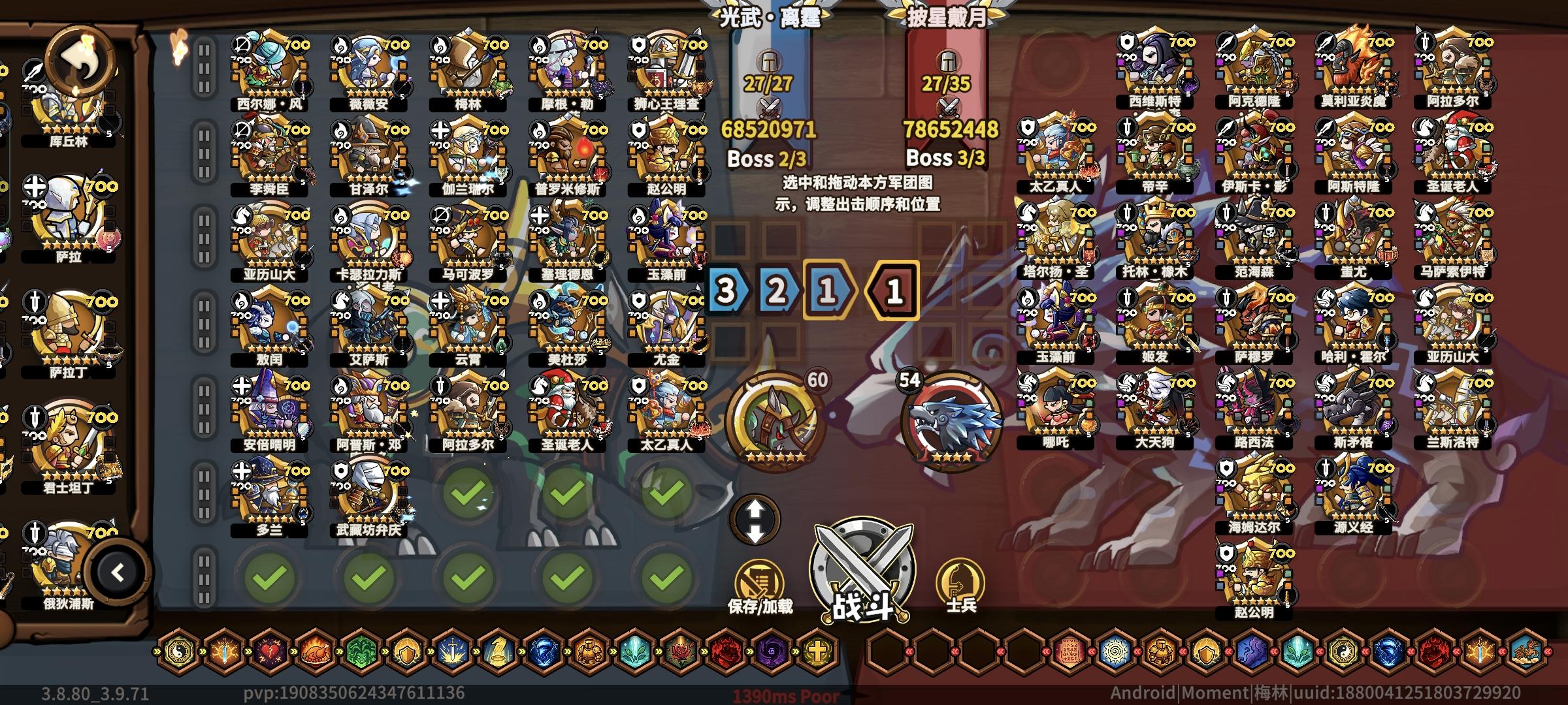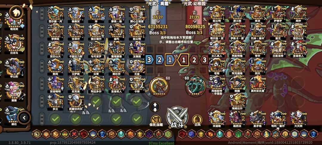不用梅林等氪金将,邓布利多和伏地魔这些新出普限也不用,boss选择很好满星的橙色犀牛,算成型弓法,很多英杰可以根据自身调整。