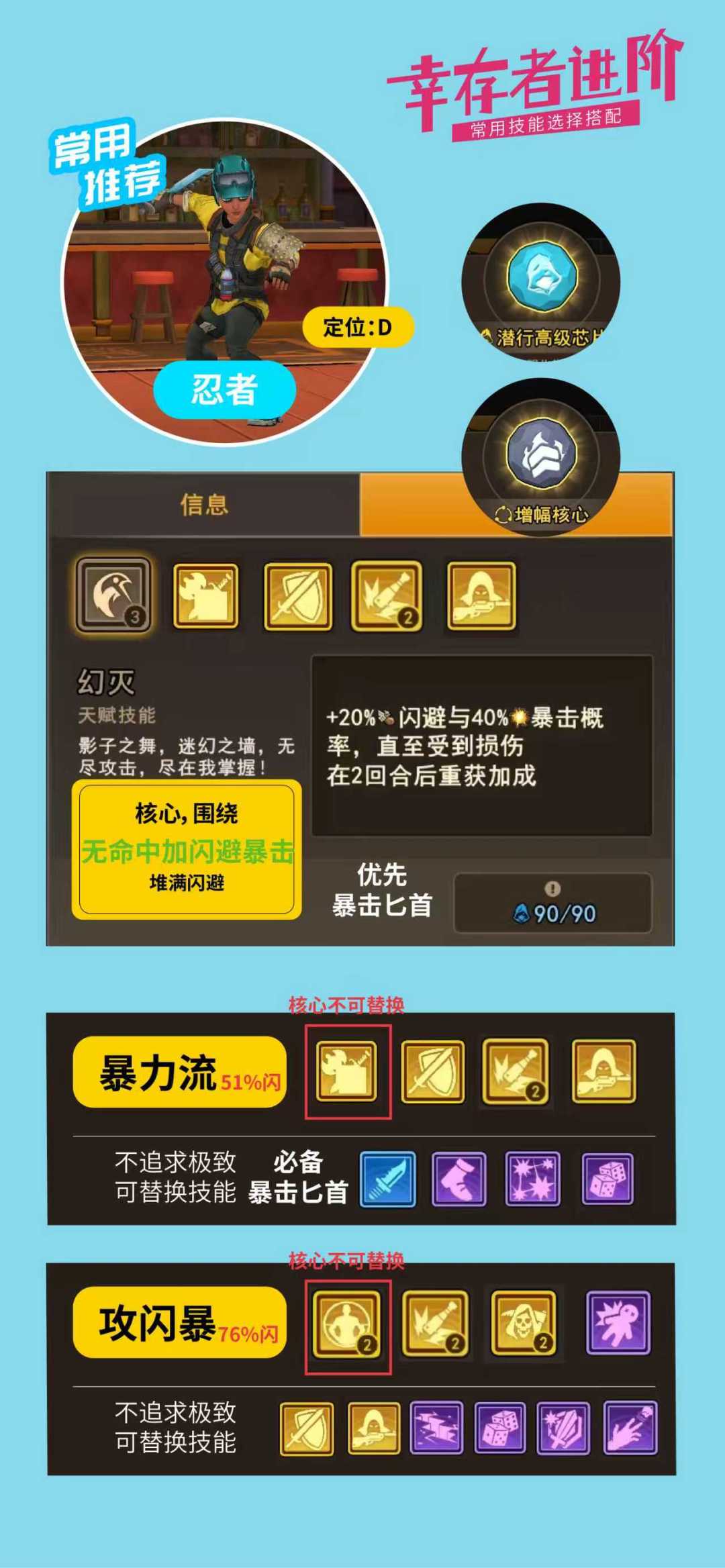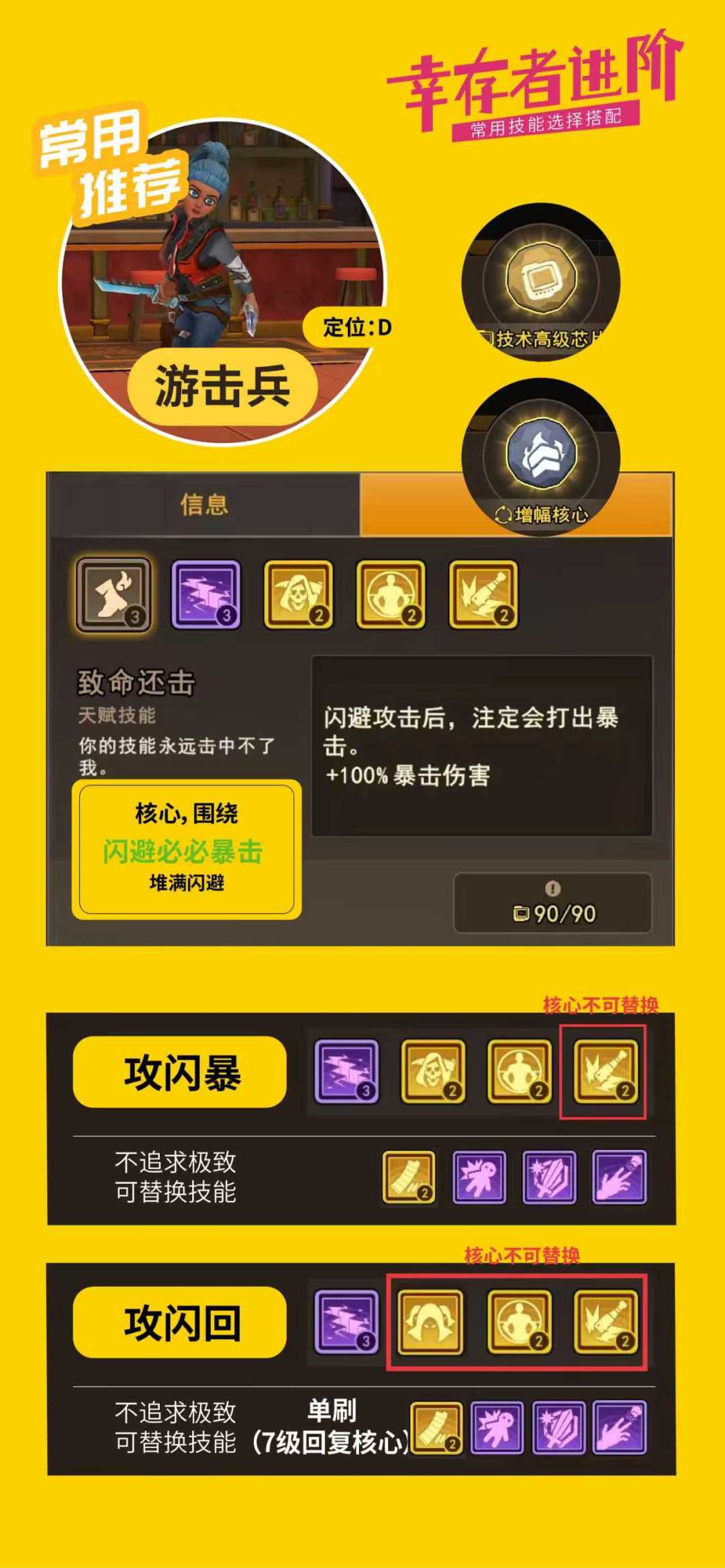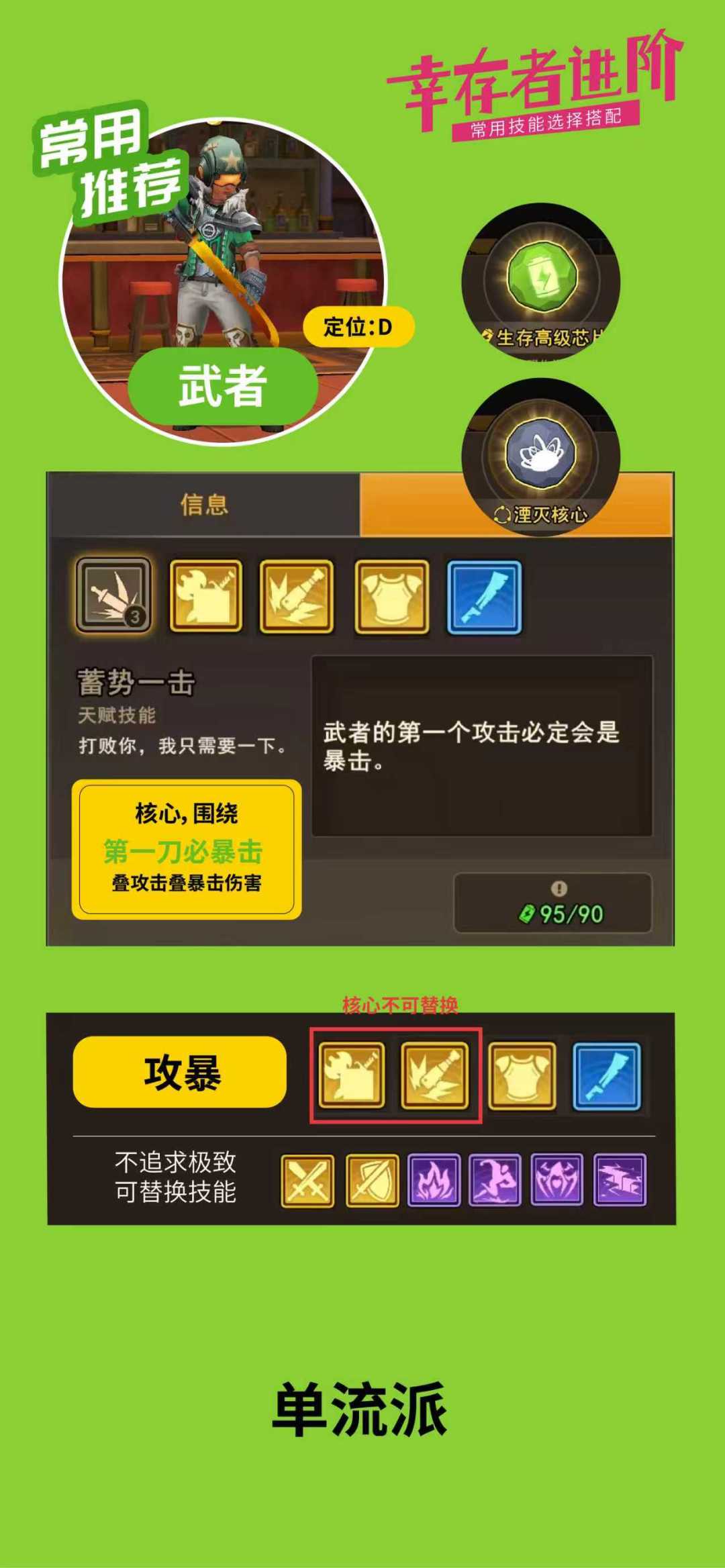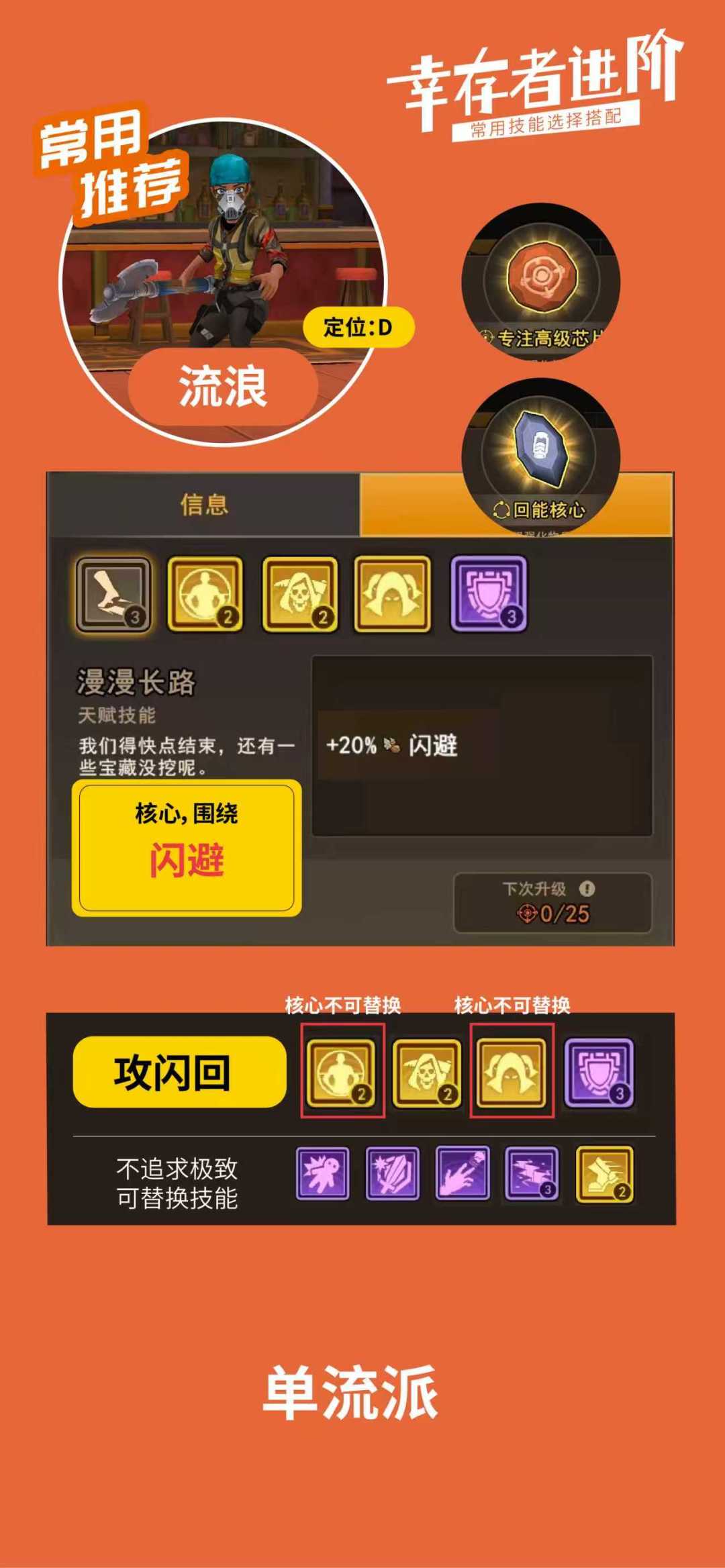 ,不管是遇到争对肉打击的boss,还是遇到抗暴击闪避的头目,还是碰到血量超厚的怪物,都可以有均衡的应对。PS,如果有幸存者收集爱好的,可以单独联系配置技能。