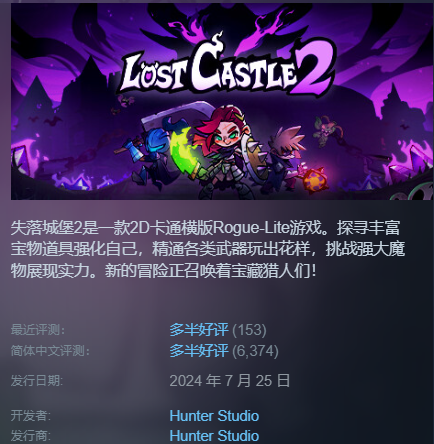 曾被誉为“国产之光”的Roguelike佳作《失落城堡 2》,手游勇者测试招募正式启动,其Steam版也延续着系列热度。