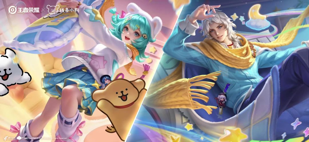 本次【小乔-线条小狗】联动皮肤,我们将线条小狗的软萌线条与毛绒质感相结合,更通过枕头、拖鞋等居家元素跟潮流装饰的搭配,打造了元气治愈少女的形象——小乔正和她的线条小狗伙伴,在暖冬的明媚阳光中为你送来毛茸茸的快乐~
