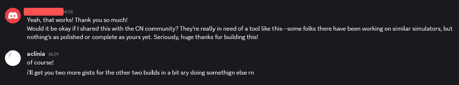 “如果你能给出DPS计算错误的具体理由,比如“我加了这个装备,伤害本应因此提升x%,但只增加了y%。请不要直接告诉我“嘿,这个构建的输出不对”,我对这些信息无能为力。”