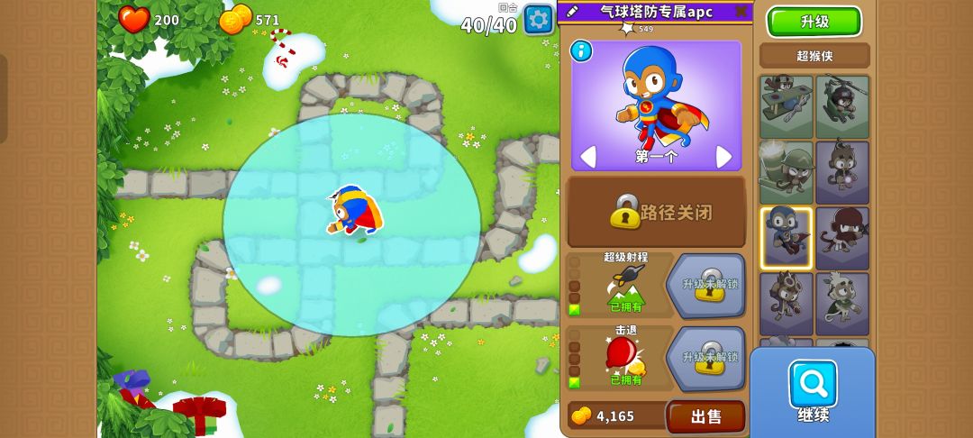 又是非常简单的高级挑战,只需在6000元以内击败MOAB就行,那就分享能一猴且无伤通过的方法