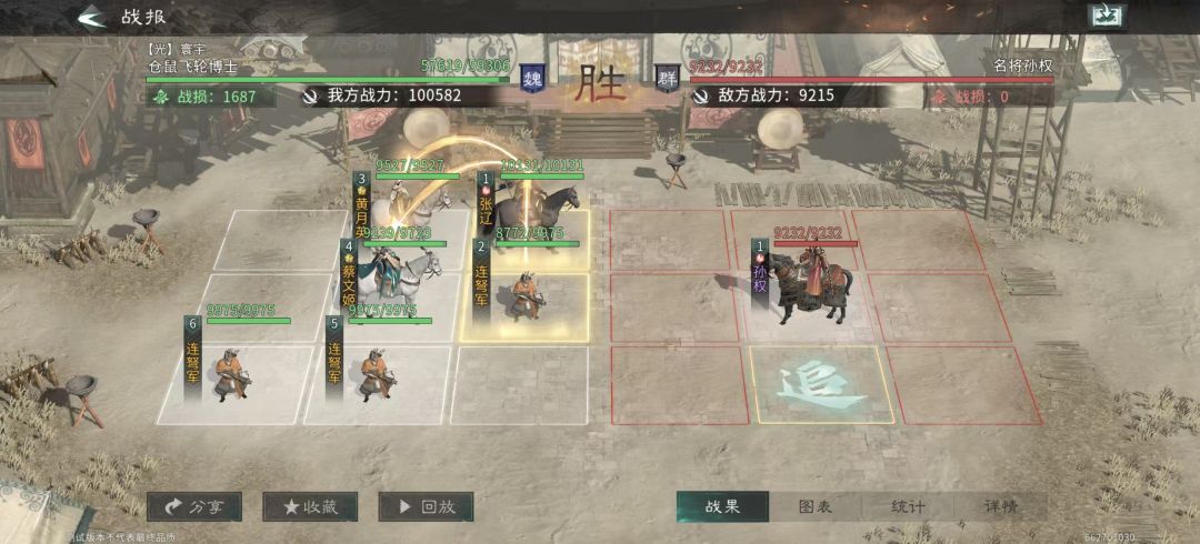 英雄站位:蔡文姬与黄月英不占用追击格,张辽需同时位于黄月英与蔡文姬的追击格上,以最大化触发追击效果。