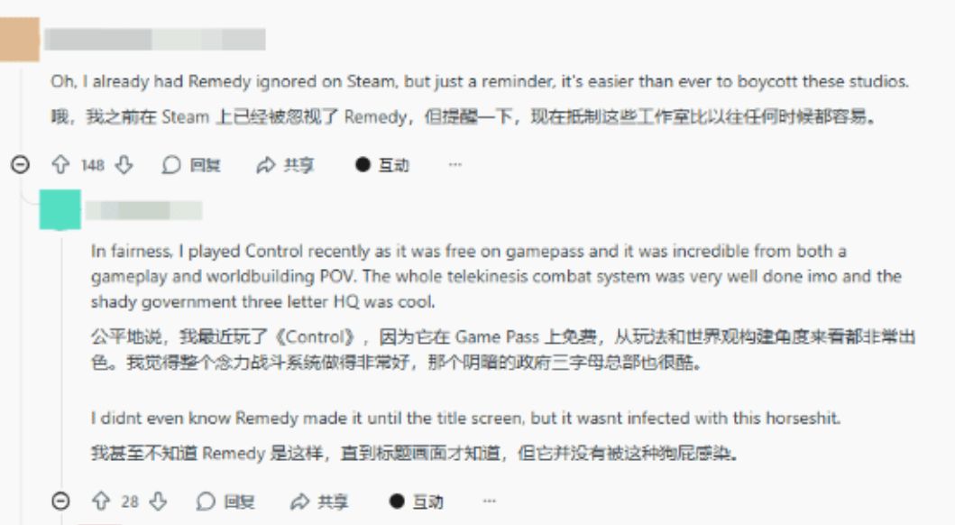 玩家们自然也炸锅了,Reddit上全是吐槽的声音,好多人说已经把Remedy加入Steam忽略名单,以后再也不买他们家游戏了。确实啊,大家玩游戏是为了放松娱乐,不是来被迫接受别人的思想输出的,好好做游戏不行吗?非要搞这些有的没的,把游戏当成传播议程的工具,真的太败好感了!