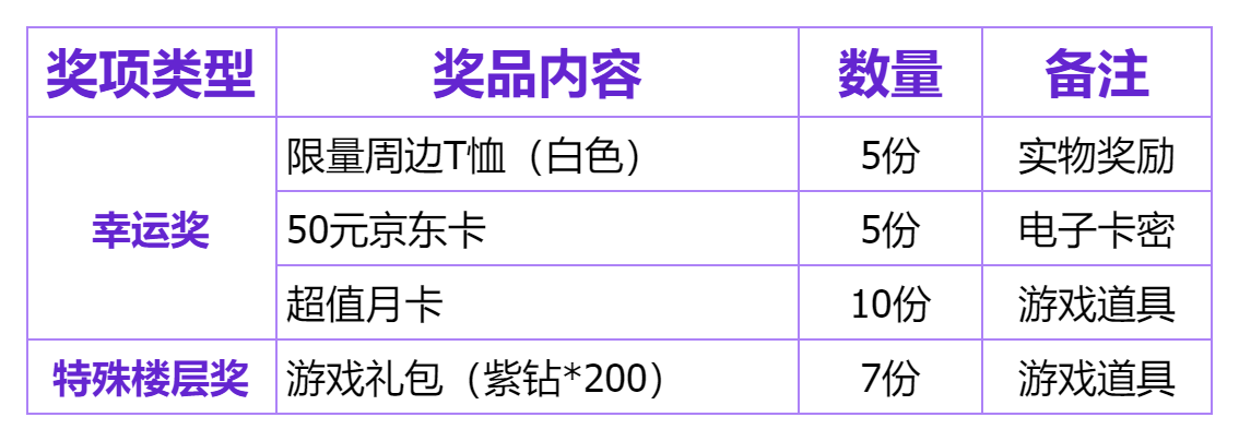 4.月卡/紫钻奖励发放:活动结束后,中奖搭子需在获奖楼层回复游戏ID,奖励将通过游戏内邮件发放。