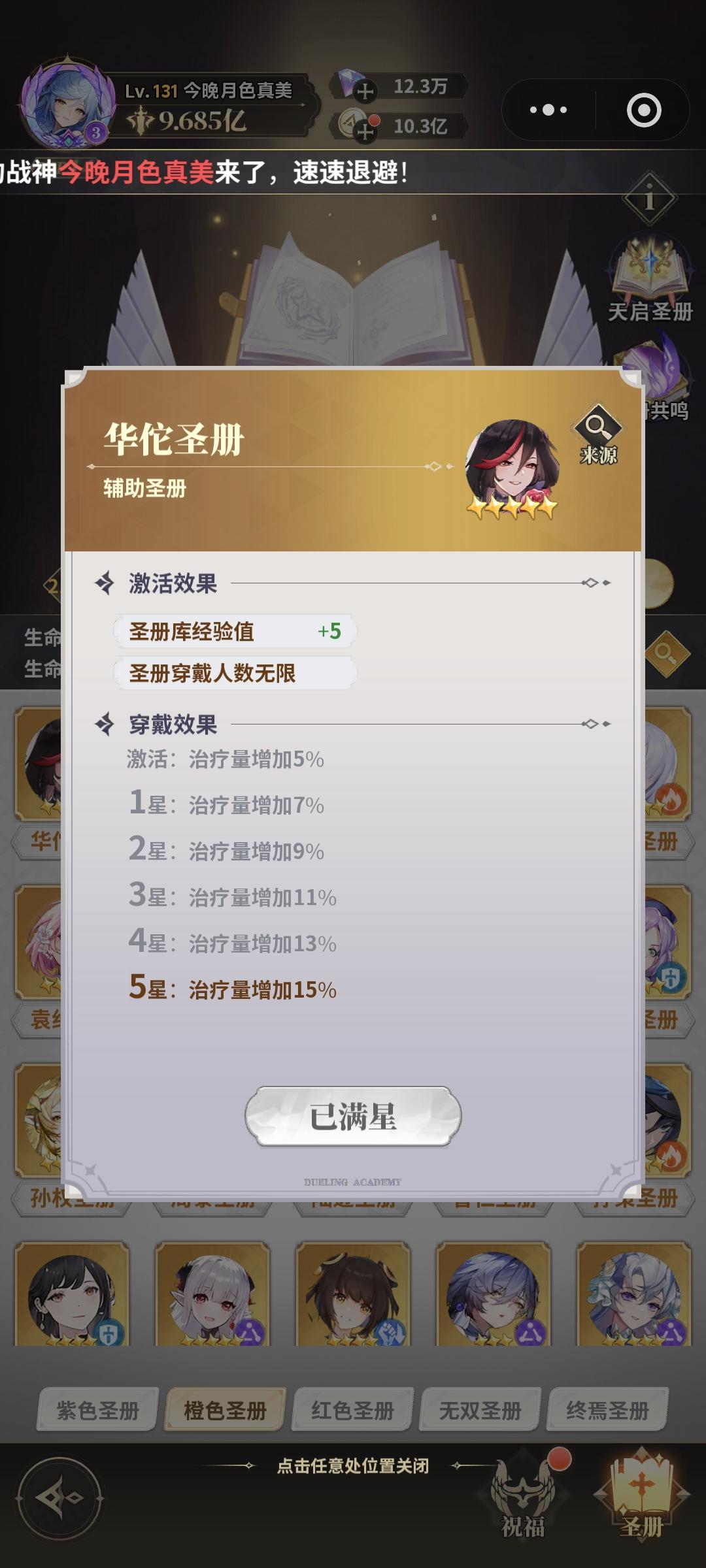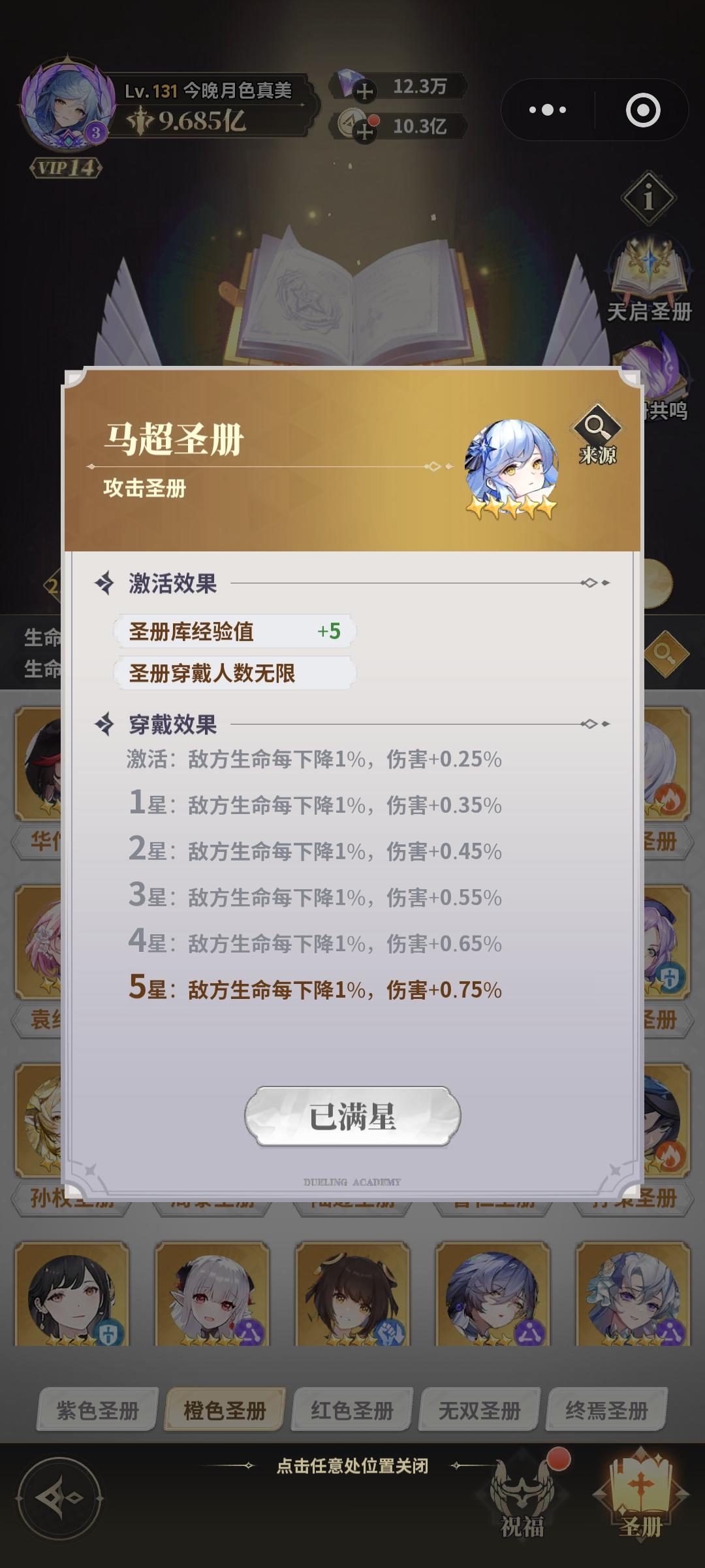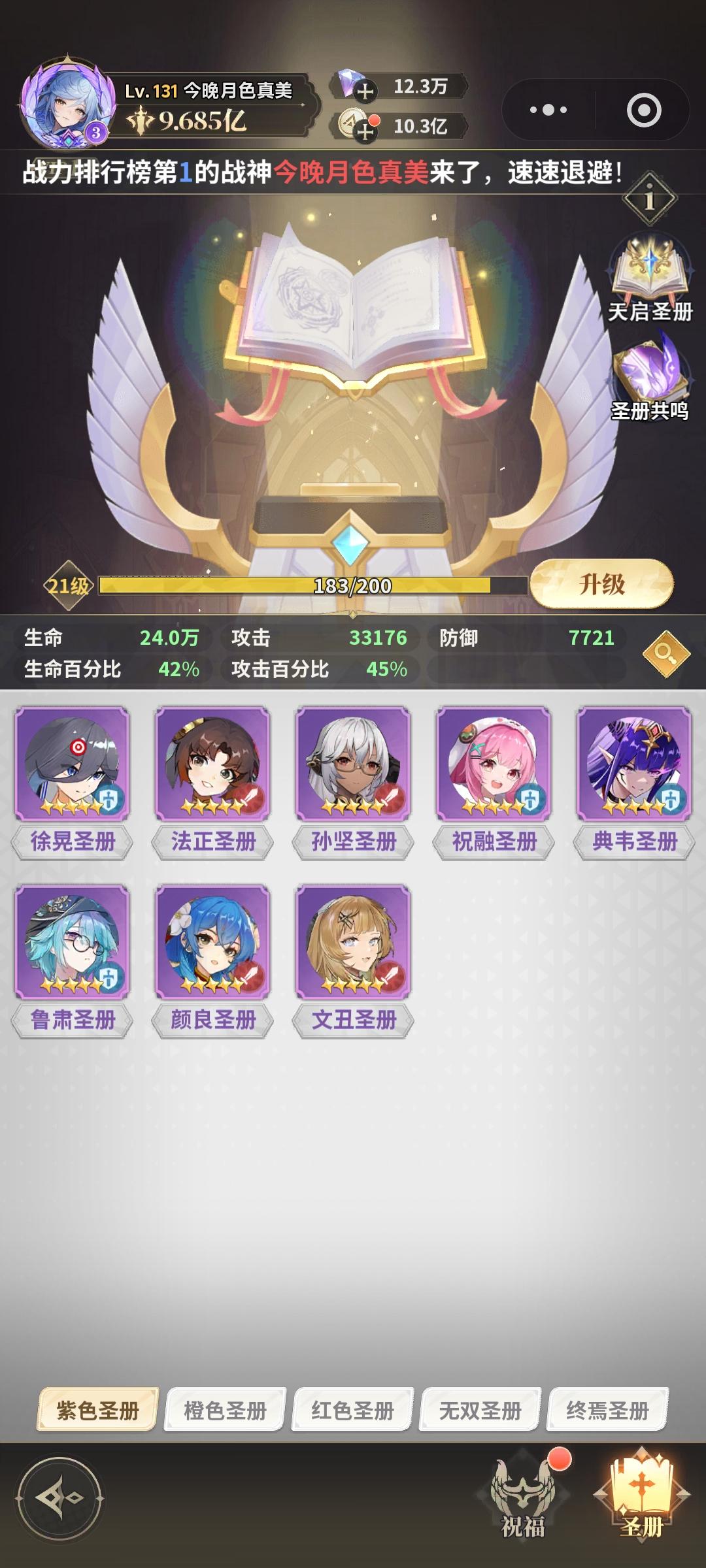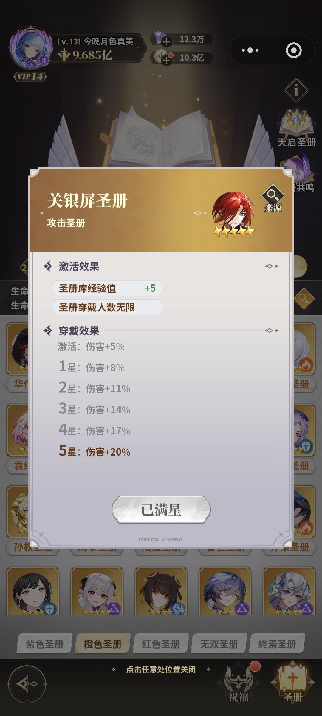 首先如图圣册也是发品质的我们前期主要以红色册子为主从橙色里挑几个拔尖的的用,紫的我们一般不用的,实在没东西用才会上。
