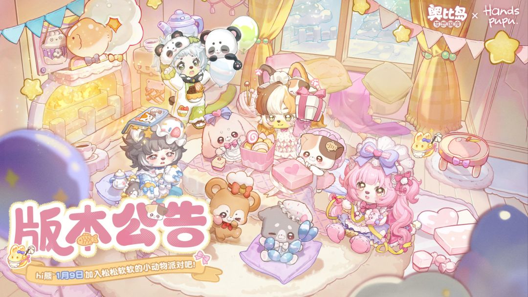 遥远的pupu星上,住着一群手掌大小、毛茸茸的可爱小动物。它们为了庆祝新年到来,专门举办了一场小动物派对!全新版本「掌心派对」温暖上线,全新装扮「小狗噗噗套装」「小兔妮妮套装」登场,来参加毛茸茸、暖乎乎的小动物派对吧!限时小游戏「派对扫除」上线,施展清洁魔法,让pupu星永远保持纯净和快乐!此外,还有限时宠物「魔法小兔妮妮」等内容上线。一起在软萌派对里度过一段幸福时光吧~