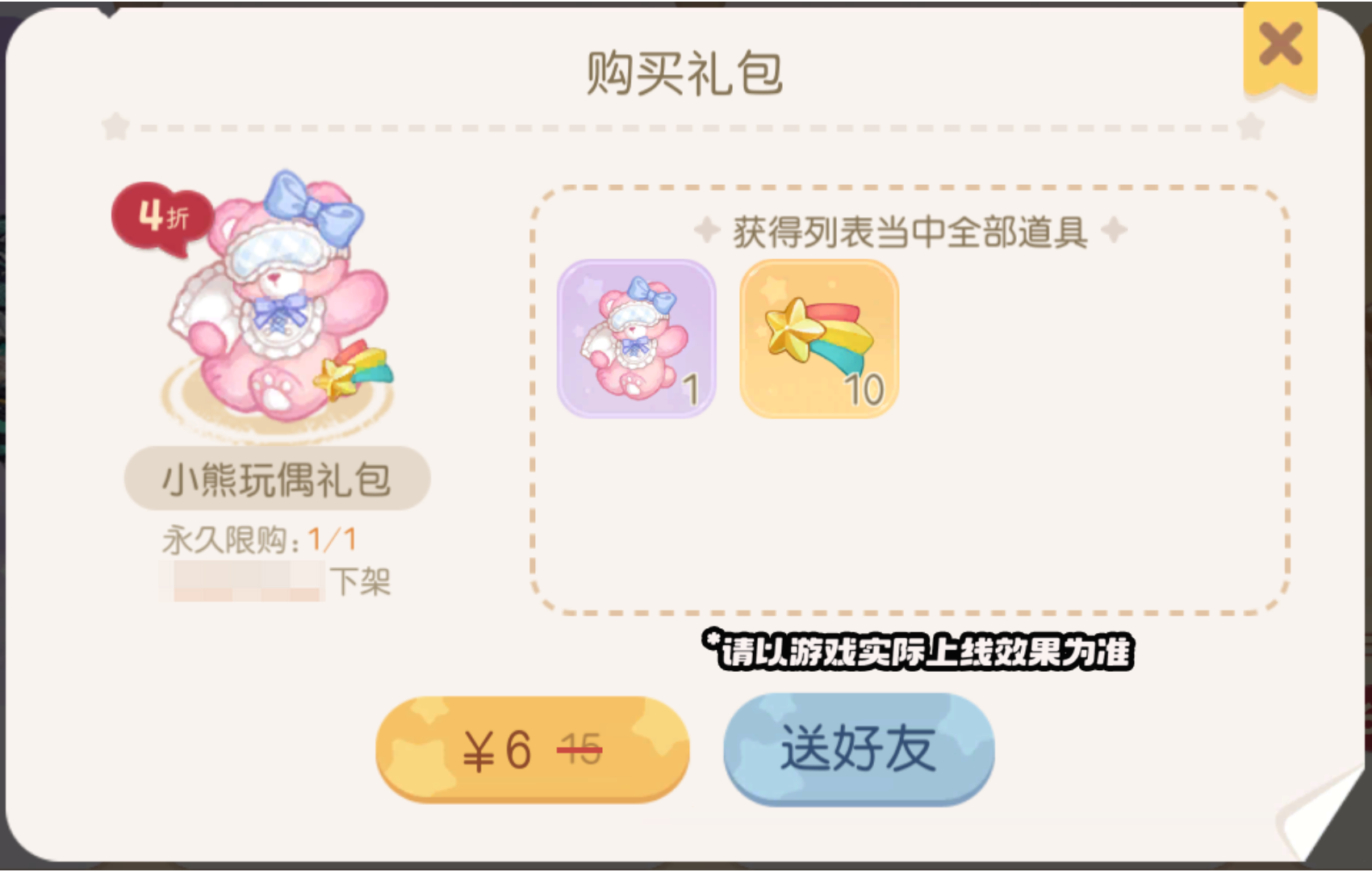 活动介绍:「小熊玩偶礼包」限时上架,购买可获得「好梦小熊玩偶」装扮和「高级彩虹星星」奖励,喜欢的小奥比们快快行动吧!