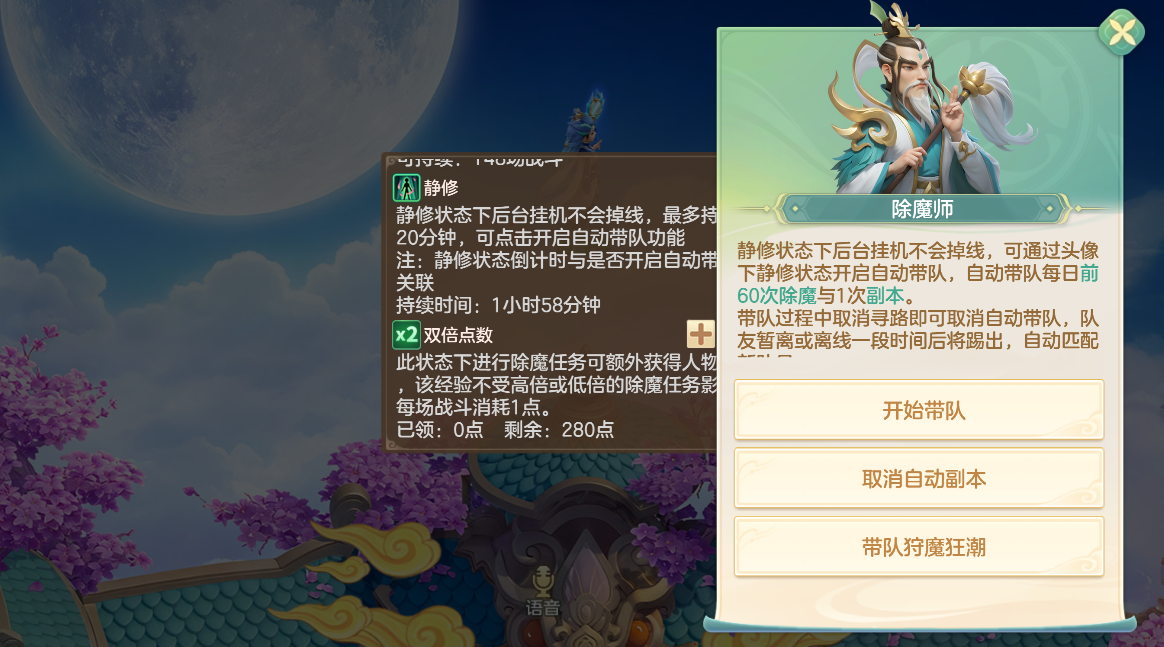 3.狩魔狂潮:新增静修之心自动带队功能,开启自动带队后将自动寻路打怪,直至活动结束