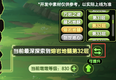 4、切换关卡功能:营地等级提升到一定等级后会自动解锁对应层数,如“营地等级达到45级,小西普可以点击切换层数按键查看并前往”,可以更快前往更高层数探索。