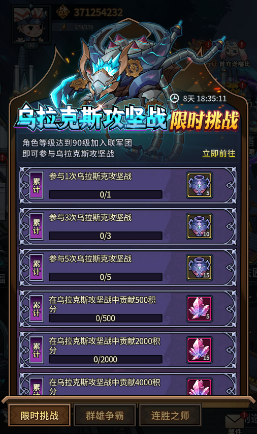 2、GVG限时挑战开启!完成任务争夺专属远古头衔