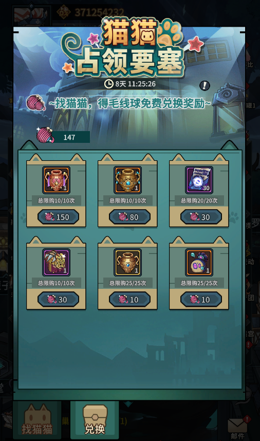 4、猫猫占领要塞限时开启,收集毛线团兑换神话、钻石材料