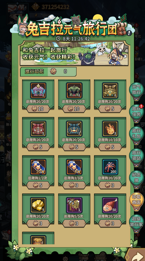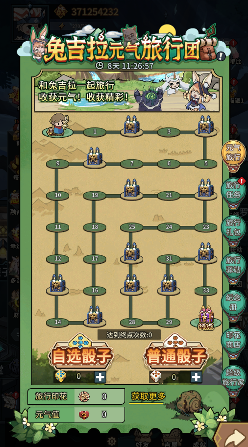 1、活动期间,可以通过完成任务或购买礼包等途径获得旅行骰子,使用骰子可以在活动地图上与兔吉拉一起旅行