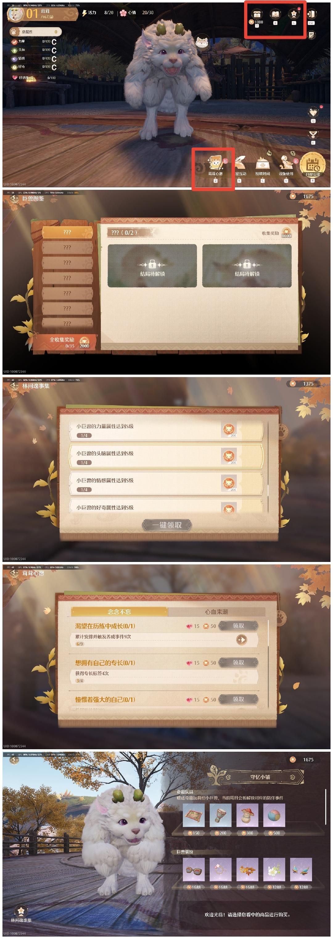 成长勋印也能在守忆小铺购买道具触发不同的事件或者打扮巨兽。