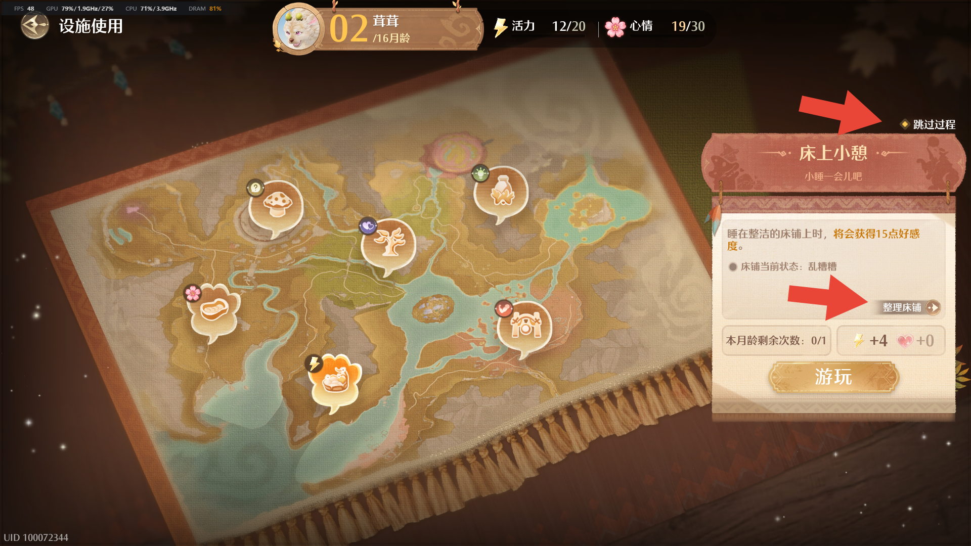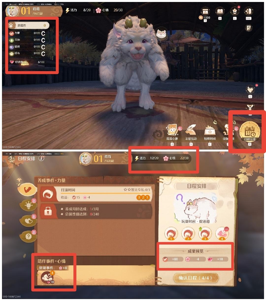 ②接着就是日程安排了,安排完日程当前月龄就会结束,所以和巨兽的互动投喂都要先做好。有些日程会概率性触发事件,优先选成功率高的。