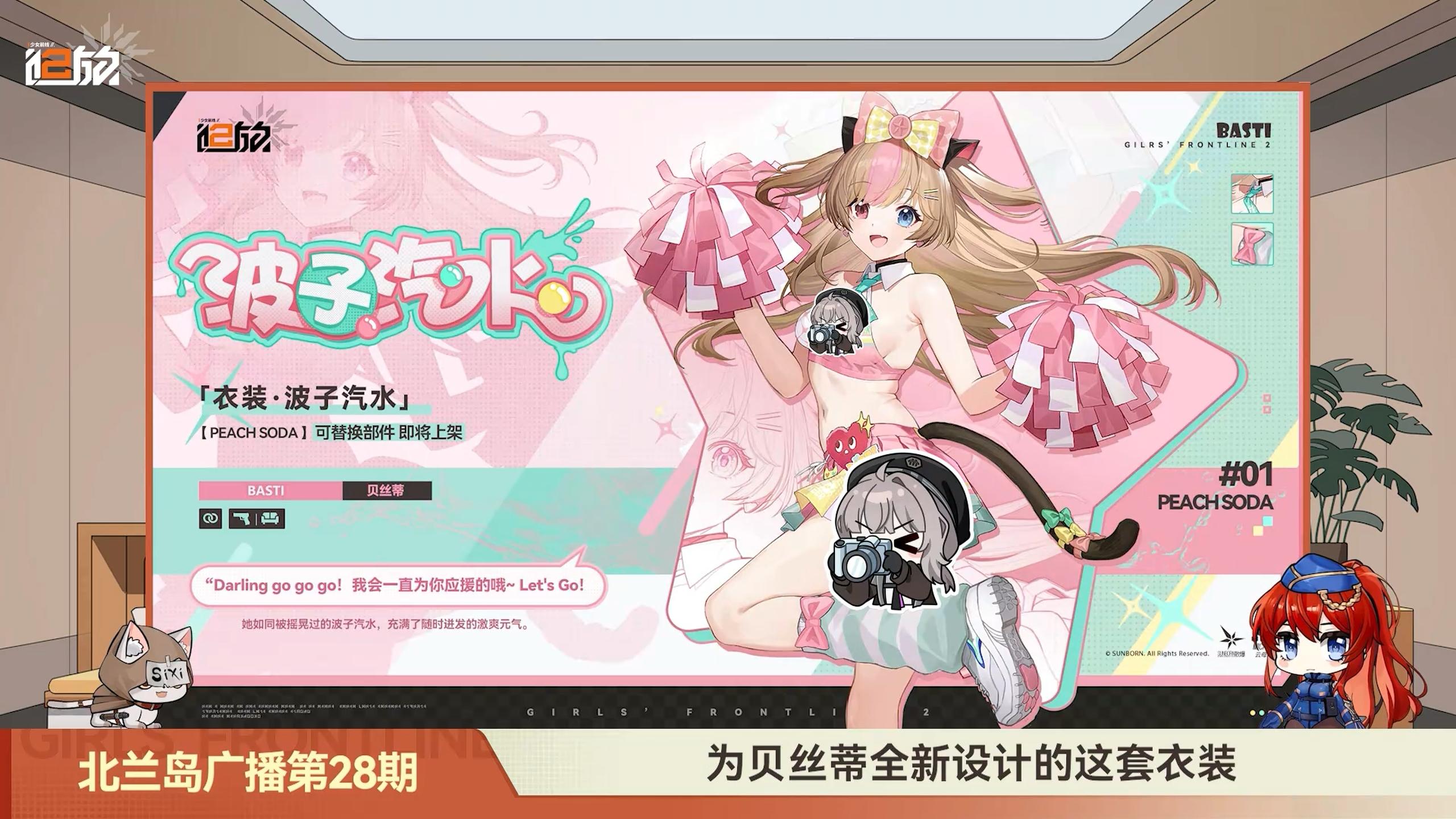 伴生皮肤是拉拉队服装,我的评价是最喜欢的一集,少前2的角色设计依旧很令人满意啊,上衣样式属于是东西南北半球都有了,扫的没边了,上线之后必须得调查一下艾莫号的内部情况了。
