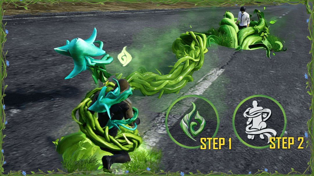 ● 主题玩法道具「藤蔓控」:向目标位置释放藤蔓束缚,并在玩家周围形成藤蔓护盾。