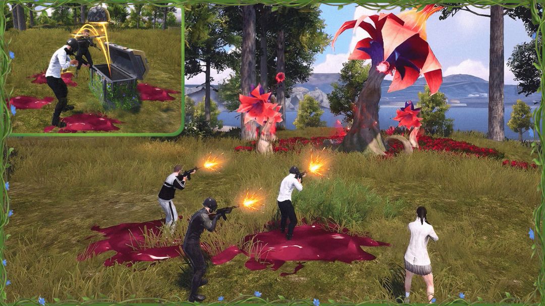 ●毒沼区:地图中魔气浓郁处会产生魔气凝聚的猙獰花朵,威胁地图环境; 击杀区域内的毒沼花王,可开启宝箱并获得丰富物资奖励。