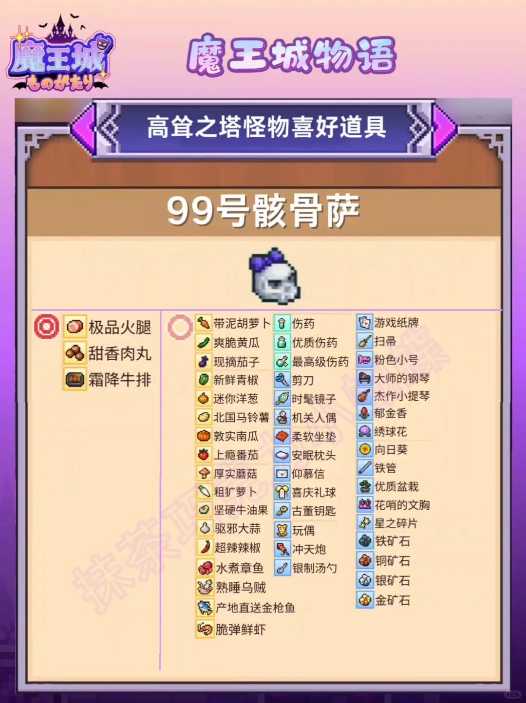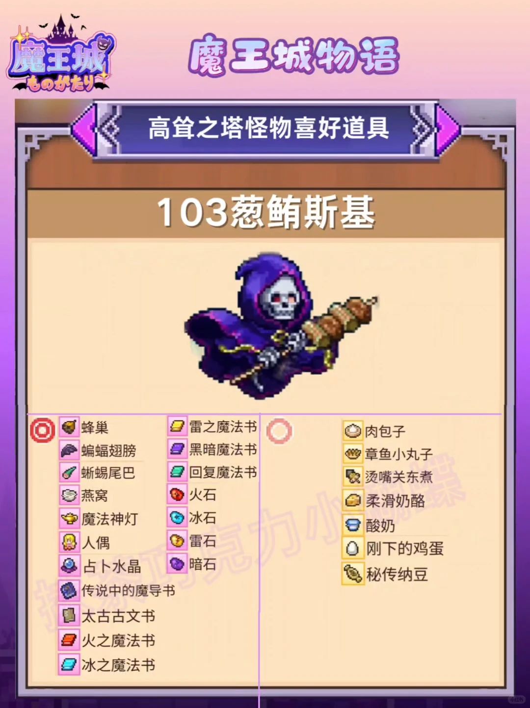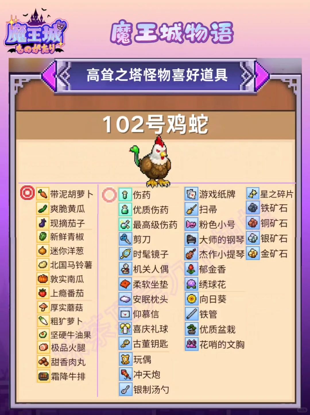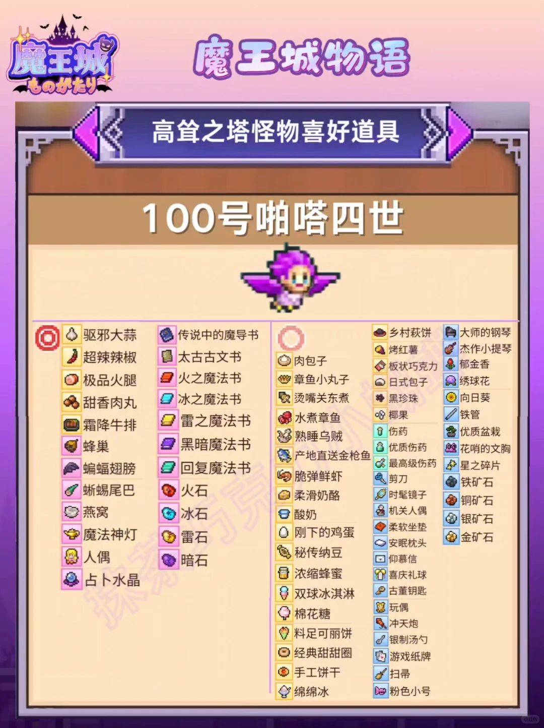 魔王城物语|高耸之塔怪物喜好道具
