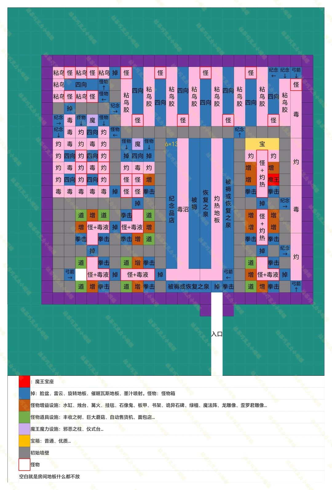 适用于前中后期的布局,布局图放置全124种怪物