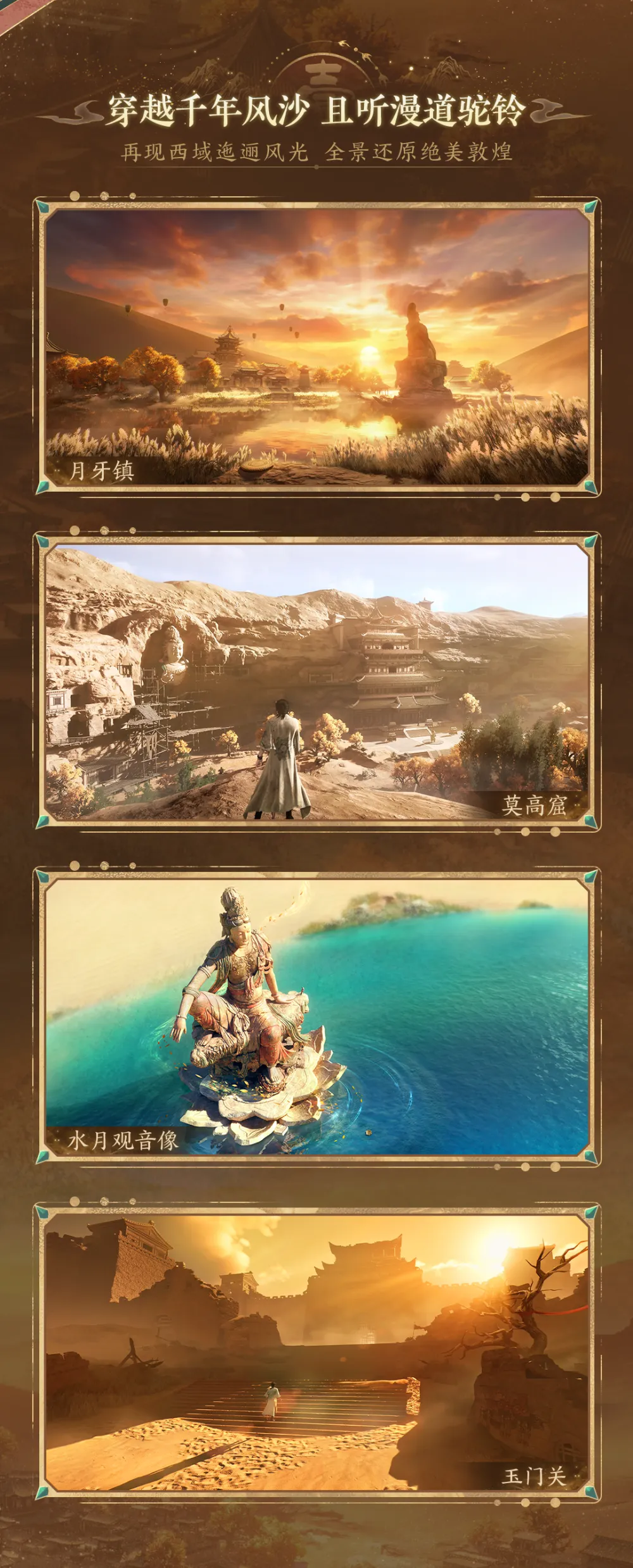 此次版本在音乐制作上同样倾力投入,由知名作曲家陈致逸量身打造多首敦煌风格原声音乐,为玩家营造身临其境的沉浸体验。官方透露,该版本是《逆水寒》手游迄今投入成本最高的更新内容,游戏内不仅构建了包含月牙镇、莫高窟、玉门关等标志性地点的广袤地图,更通过数字化手段让玩家近距离感受复原后的壁画艺术。