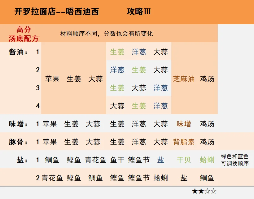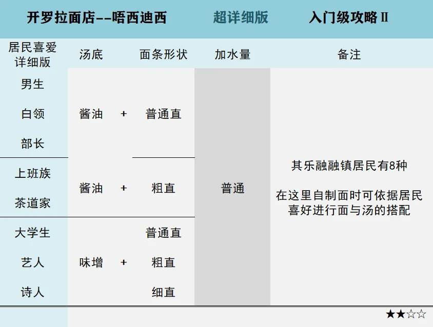 图2、3是为了满足地区居民的喜好,以便解锁成就,获得道具等,自制面和汤的时候可以参考。