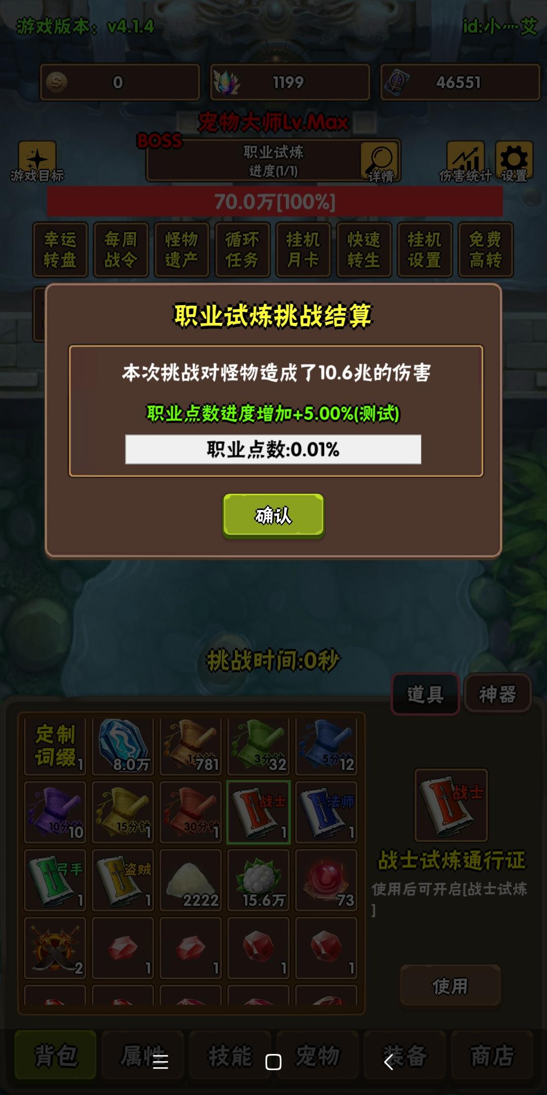 这里很重要一点:人物试炼每天每次最多只能打5%,每天3次机会,无法购买额外次数,也就意味着单个职业试炼最少需要打6天+2次=7天,四种职业需要27天+