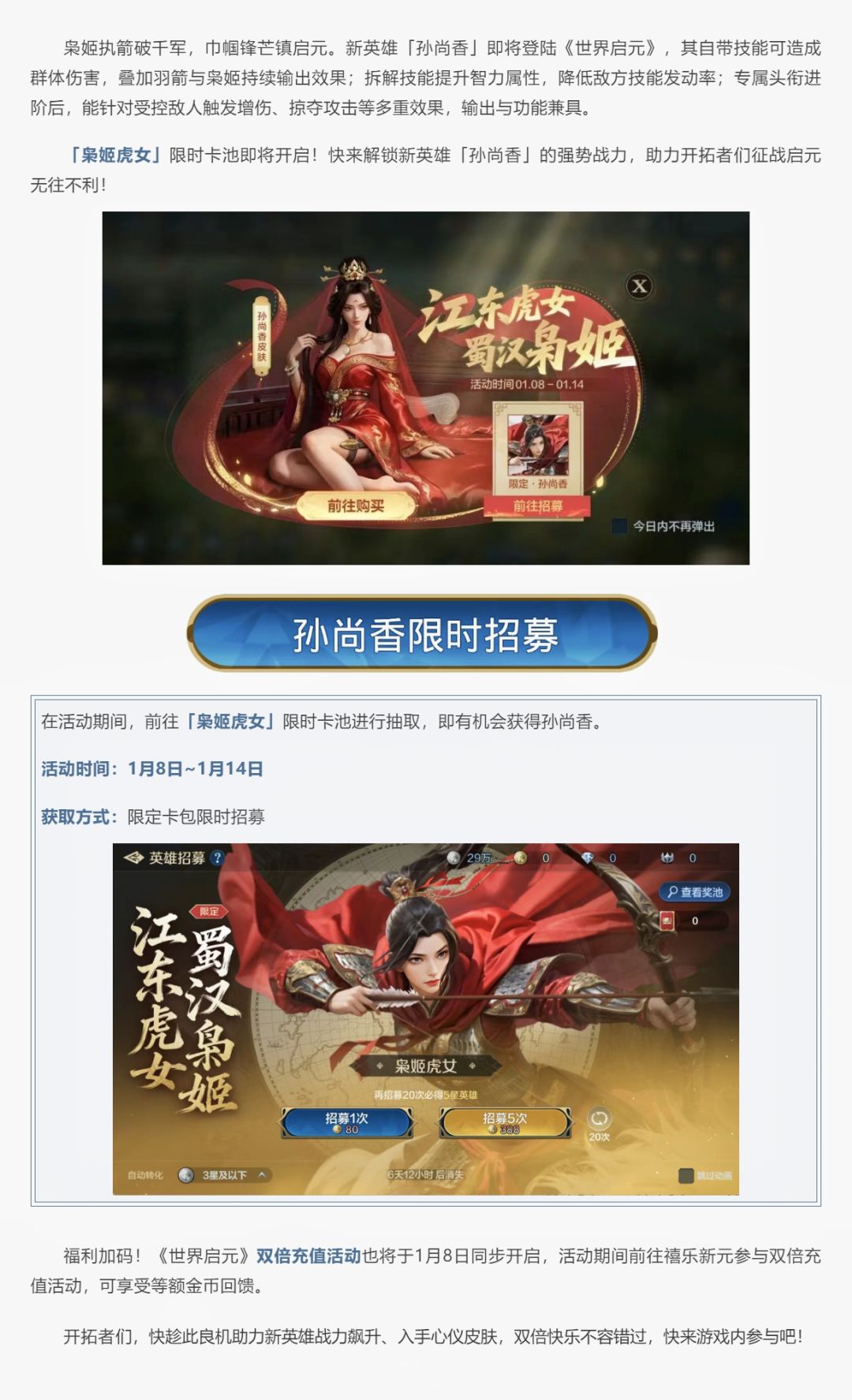 新活动资讯丨江东虎女,蜀汉枭姬,新英雄「孙尚香」即将上线!