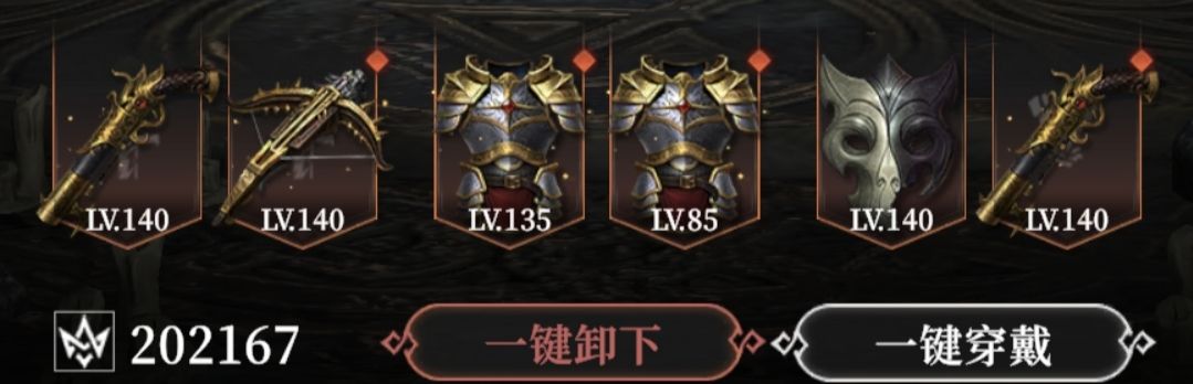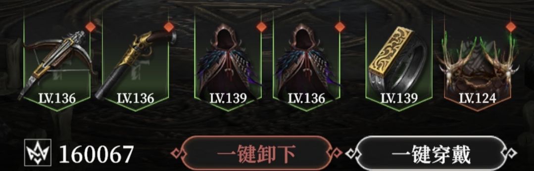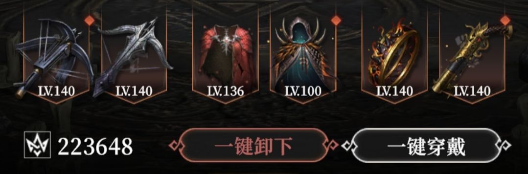 石之剑、黑狱鳞胄、缚命纺盾(没套装重置次数了,否则带上铁腕臂甲和终幕之黯效果更好)