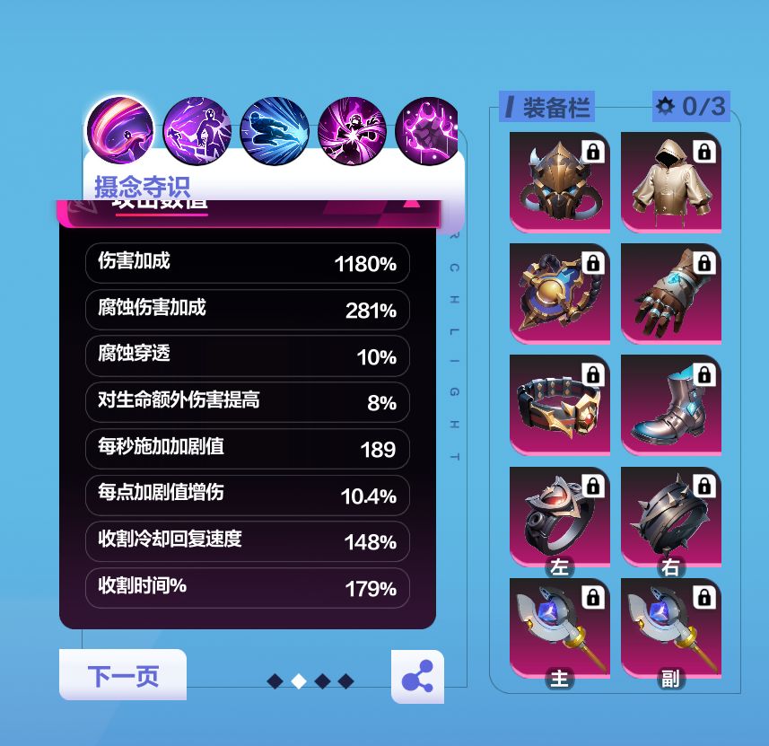 自制词缀全是智慧,inc,加剧,收割时间,抗性这些最普通的词缀,肯定不是最优但大家将就着看,能大致看下配置就行。