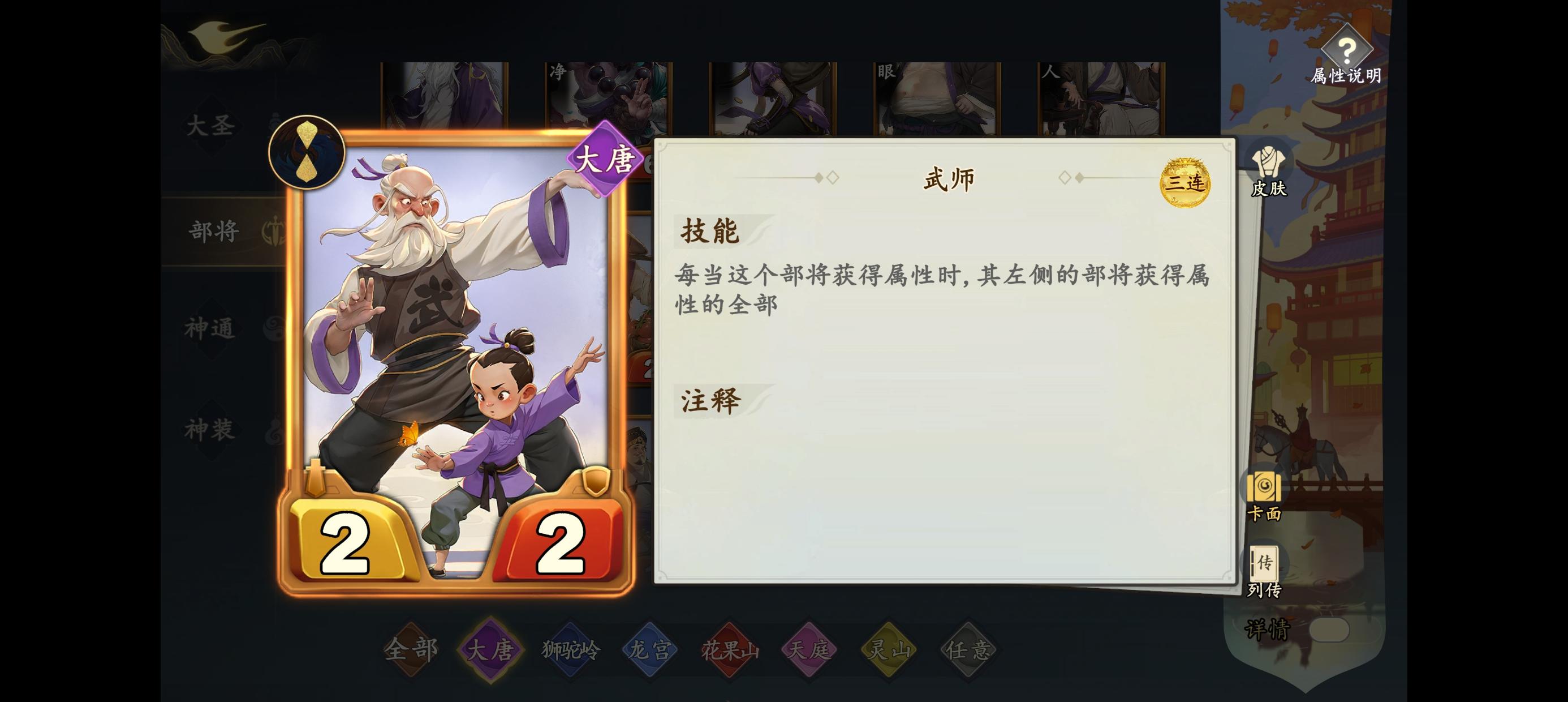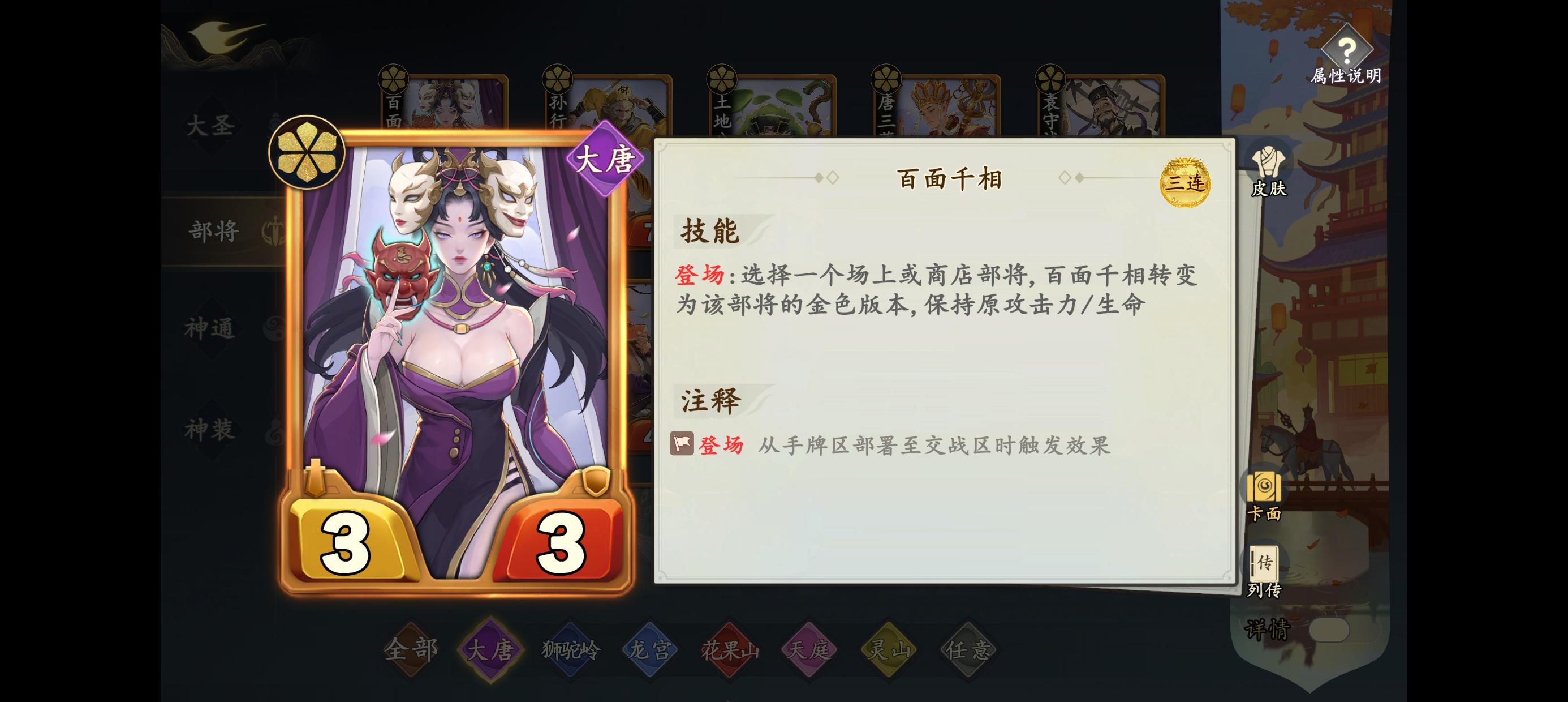一、必要条件:部将阵营同时有大唐、龙宫、花果山、天庭,其中游戏设定大唐阵容为每局必定存在,故开局能走这一流派的概率为2/5。