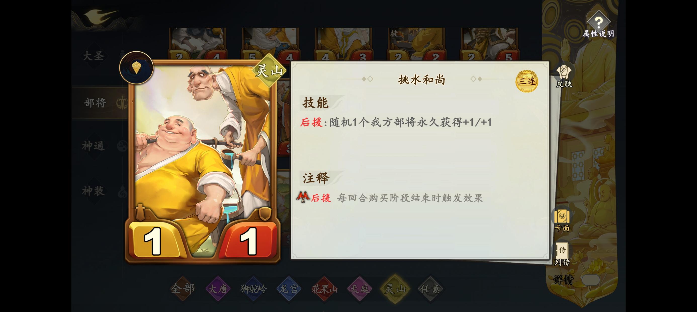 前期技能点部将保命,一本最佳是挑水和尚,护盾部将也可以点,0消耗的3次不要吝啬,1消耗时可以点返现型的后援随从(蚌壳精,兔半仙,御马监小官)。