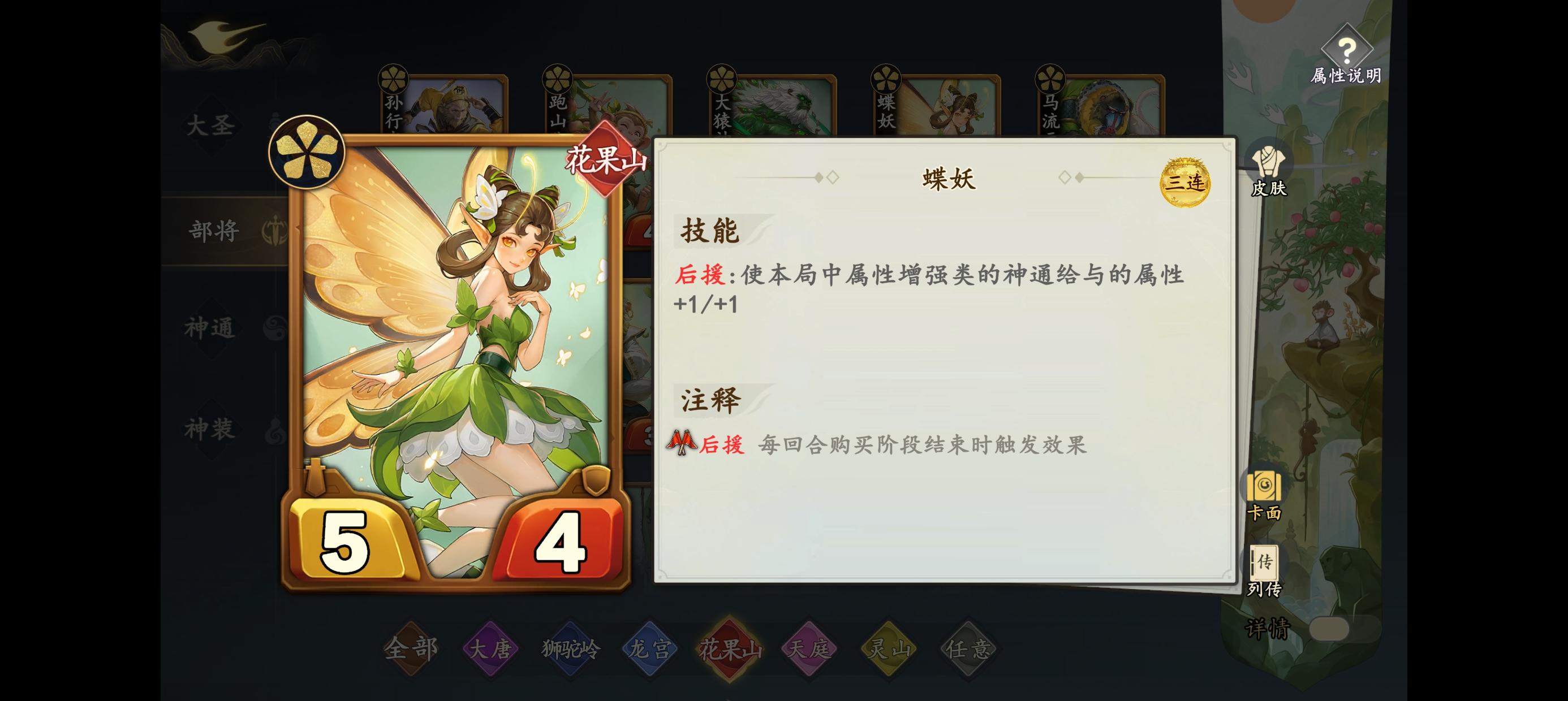 接下来每回合不要花钱(可以花最少的钱提升场面),存钱速升五本找蝴蝶,中期有合适的后援部将都能点,蝶妖和禄星到手后,技能多点蝶妖,它能拉高金丹道尊的金色衍生物金丹童子的神通衍生物金丹(全队+3+3)的上限