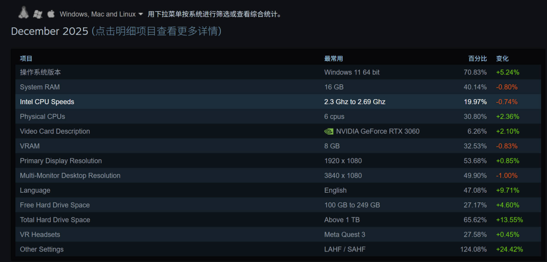 同时,在之前的调研中,RTX3060以6.53%的份额成为全球显卡使用率的榜首。