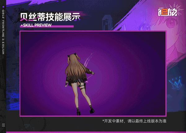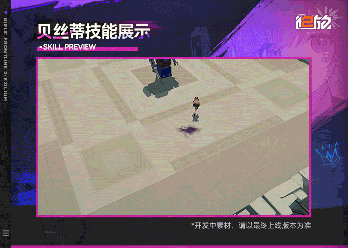 贝丝蒂是一名支援型人形,能够和队友一起传送,还可以召唤【“小可爱”】造成伤害,也能够产生大量的【毒瘴】地格,从而增强队伍的输出能力。
