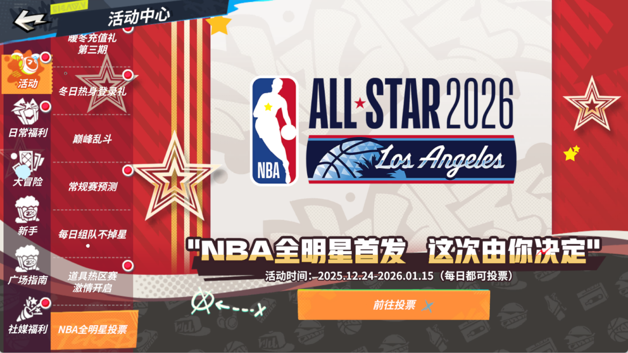 投票通道仍在开放,今天(7号)及15号更是有3倍投票日的加持,正是翻盘关键!进入派对后点击【活动】页面,即可参与NBA全明星票选,不管是为票王助力,还是为新生代呐喊,亦或是想帮传奇逆袭,赶紧上号投票,共同见证属于篮球的荣耀时刻!