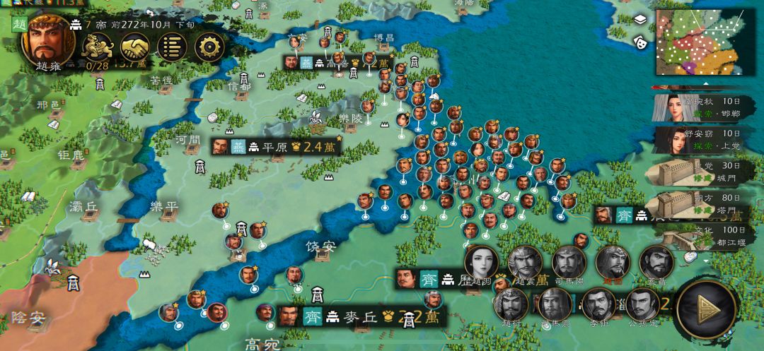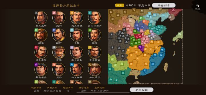 120个主城,全面增强七雄,增加少数民族势力,共24个势力,400多个自建武将。每个国家都有红特性强力自建武将。选赵雍开局快速攻灭中山,吊打儿子赵何之后,占据上党即可享受秦,魏,韩,周四国来攻打上党高地的爽局,用好本国自建投石车法师,使劲砸就行了