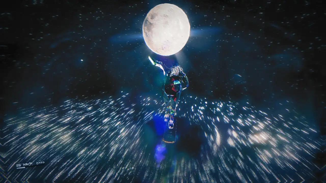 其次是画面的干净,不像很多滑雪、滑板游戏会给一大堆甚至像是汽车抬头显示的那种速度跑码表之类的UI。一个很细的血条,就没有多余的显示让整个游戏画面代入感十足。