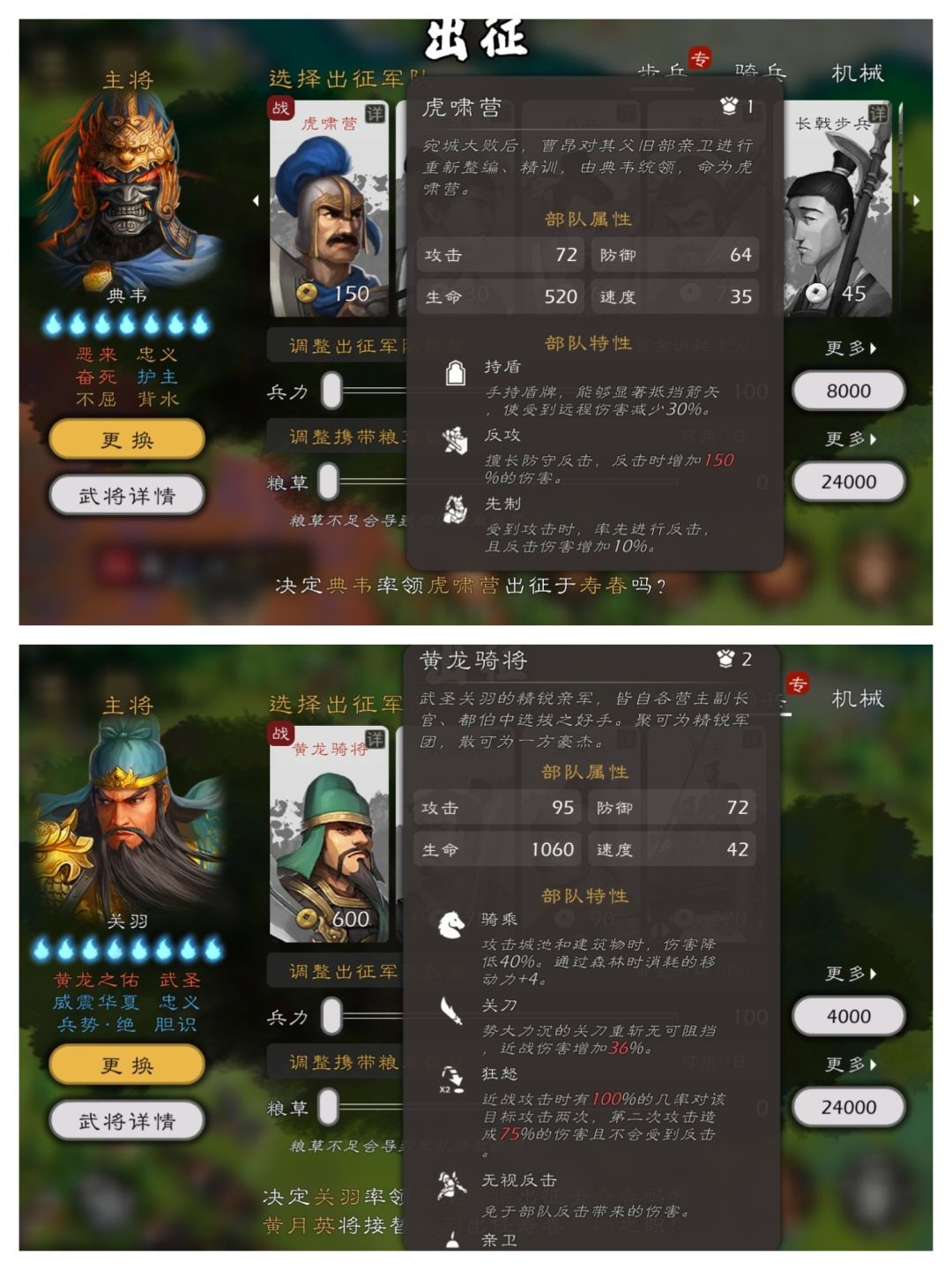 然后就是对比了,和现在所有神将中第一数值怪做个对比,测试用的关羽是满级的,两个挂件的增伤都吃到了,只用平a用(吃了两个挂件,满级的情况下,还用技能那就太赖了),然后神典韦的狂击也才二级。所以测试的角度相对公平。可以看到,神典韦的伤害相较神关羽也没低特别多(纪灵有33%的免伤,即使是在神将里面坦度也算是中等的),毕竟这两个人吃到的那个增伤效果以及兵种人数之间的差距相当大,能达到这个效果已经非常不错了。直到现在神典韦依旧是一个合格且兼具的神将,大家依旧可以相信典八百,绝对不是什么路边一条。只是相对现在肯定不如那些超标的神将,但是破局和性价比趣味性还是值得大家一用。