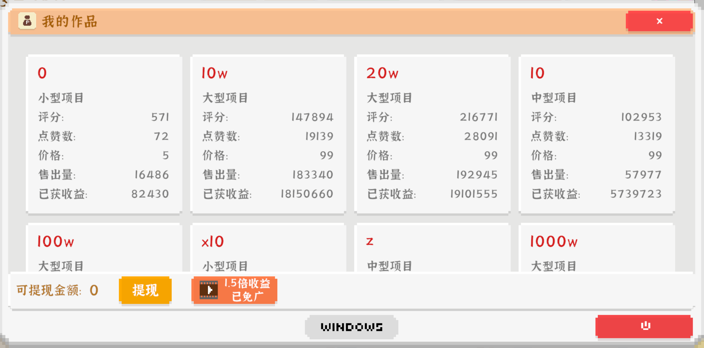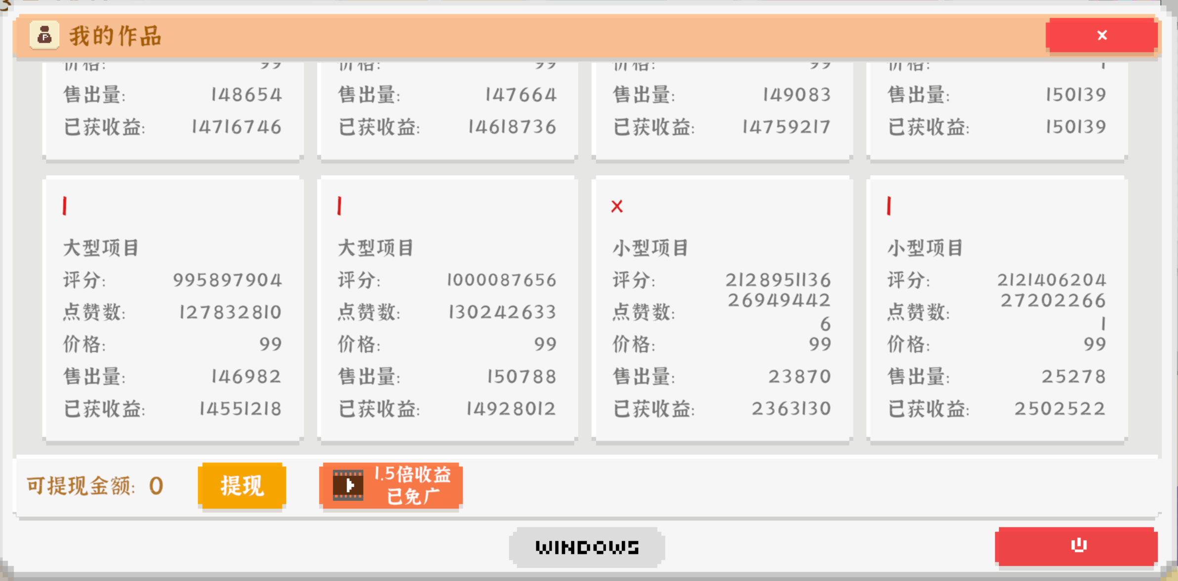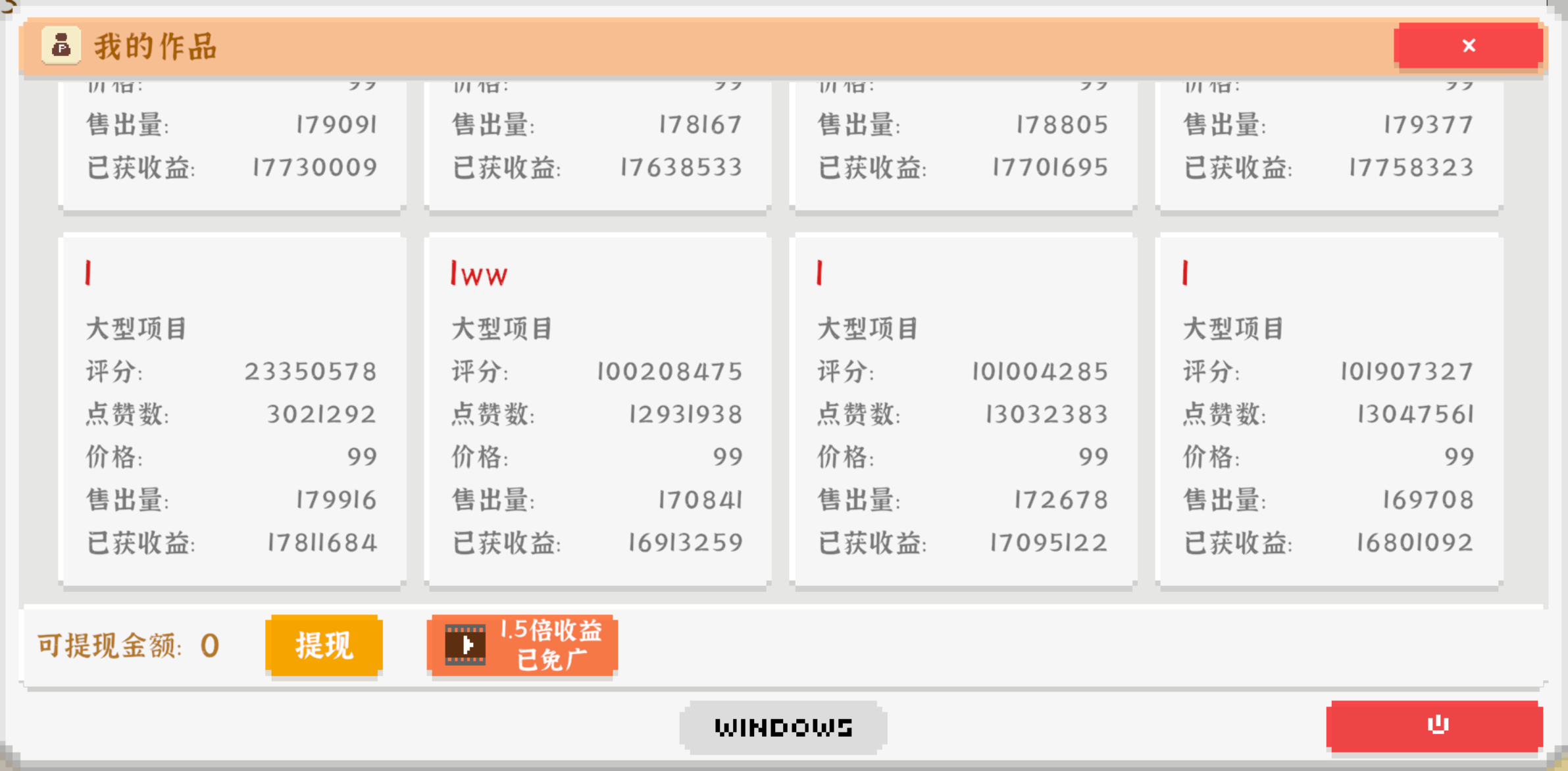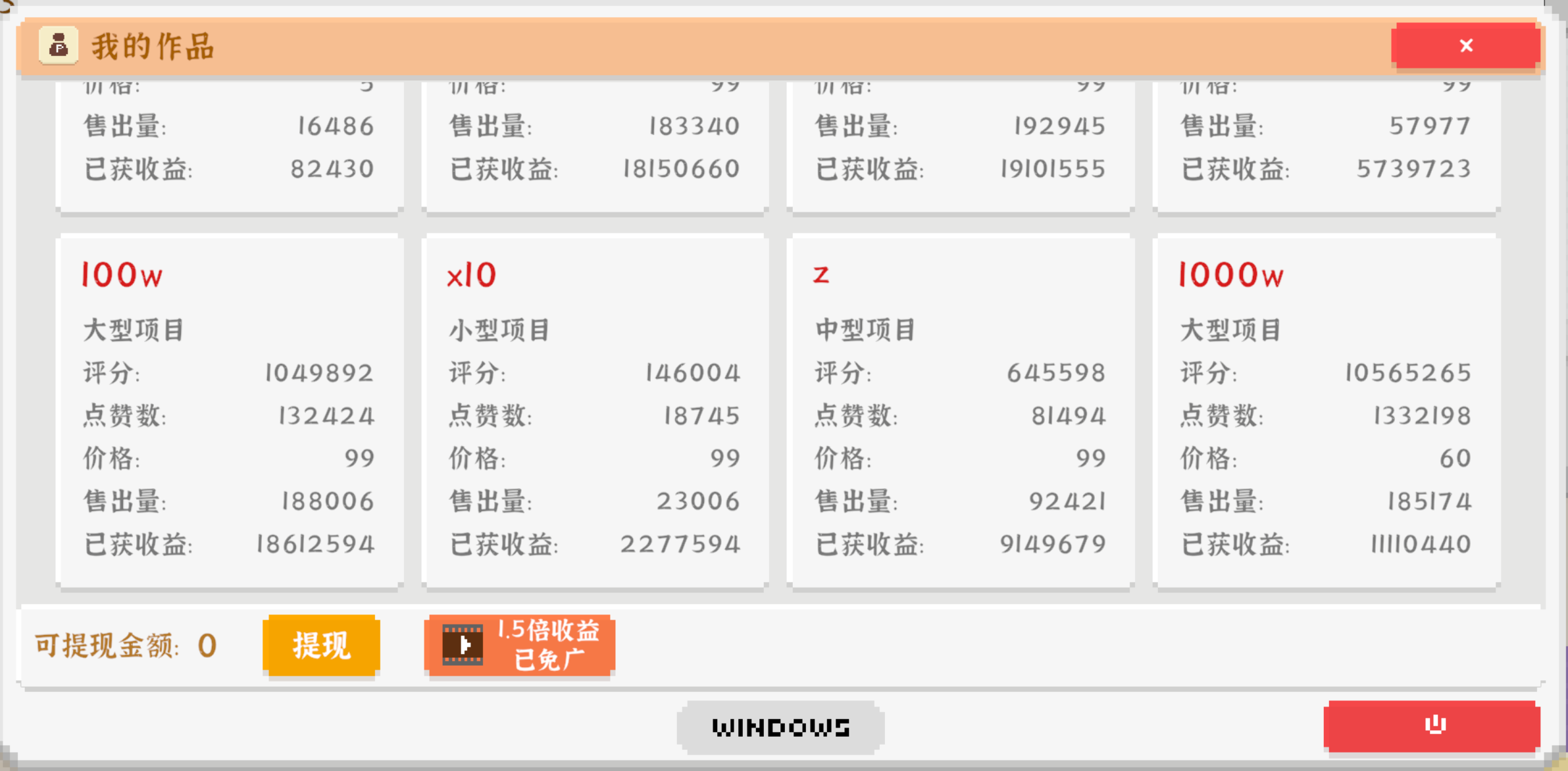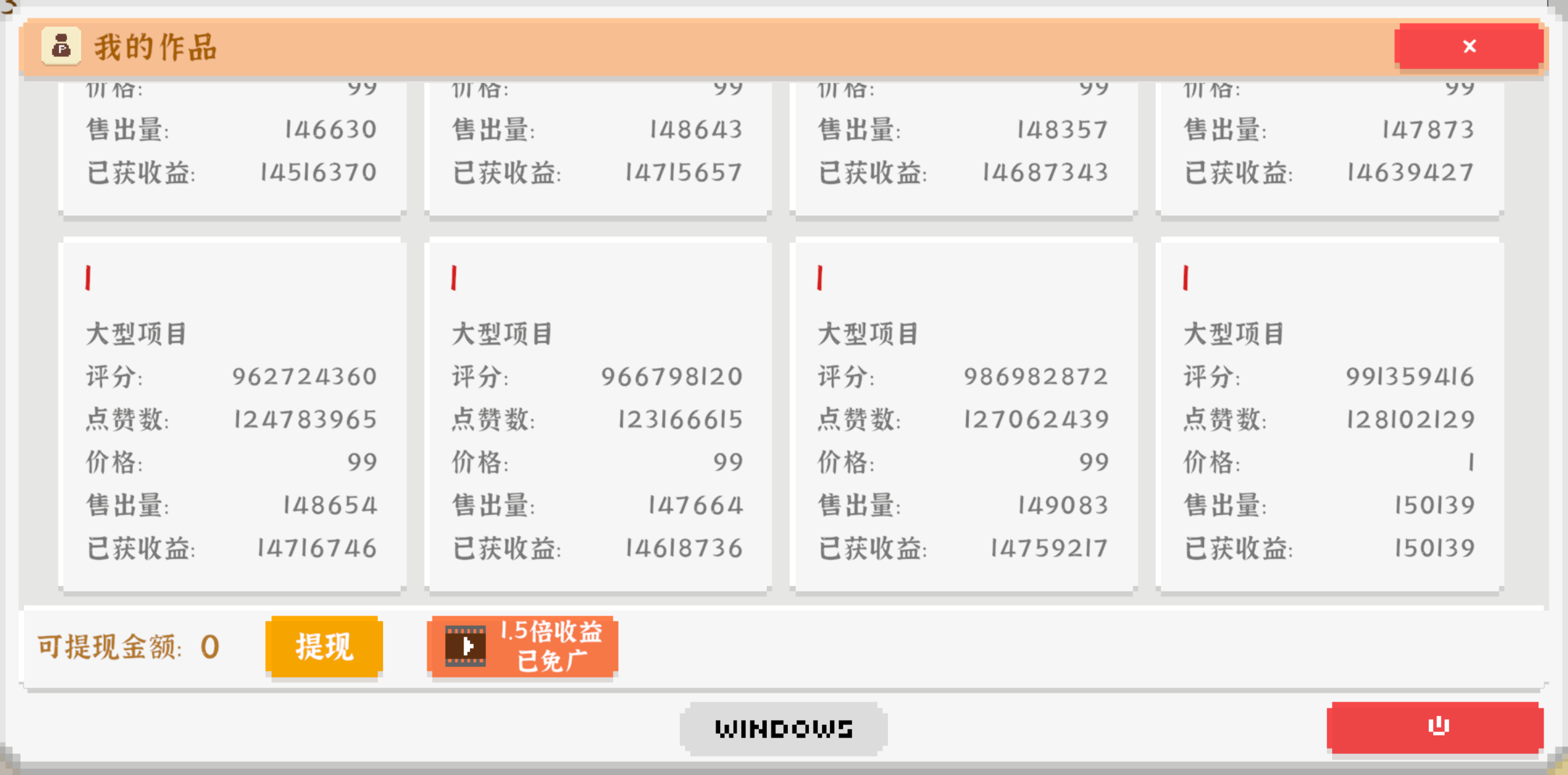 这其实是因为1亿评分的作品是很后面才出的,在此之前前面的作品都会产生收益,等到1亿评分作品做出来时,前面的作品已经累计了几百万的收益了